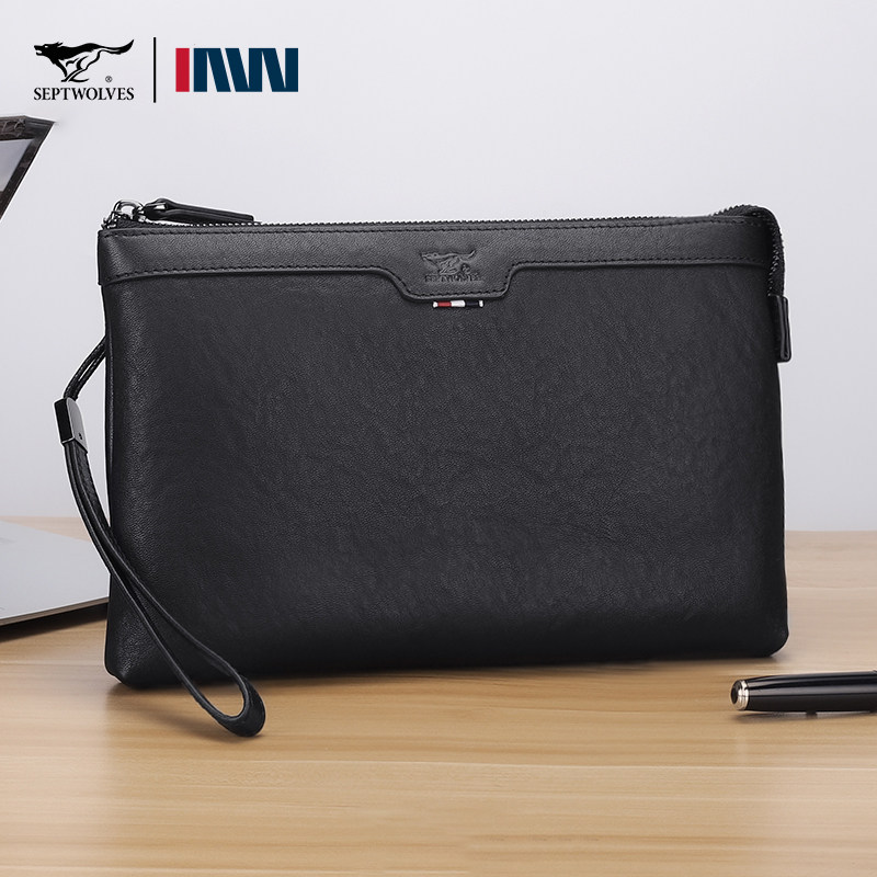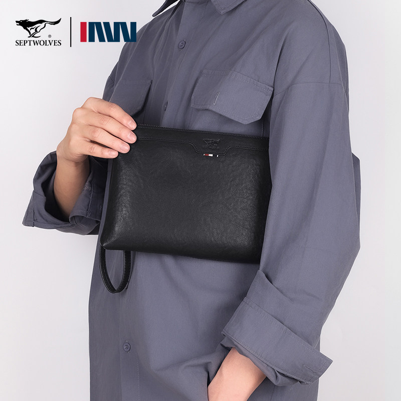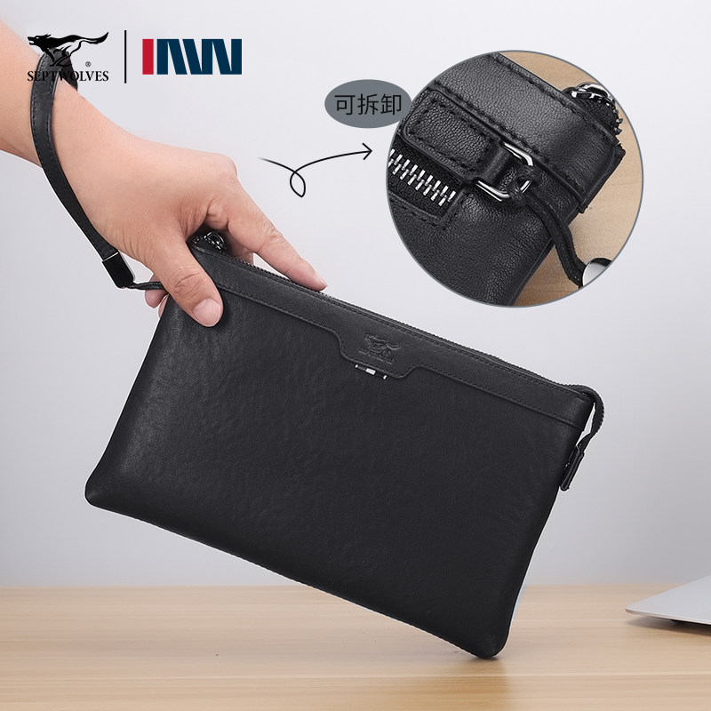 七匹狼手包男真皮商务款潮流男包拉链官方皮包男士钱包正品手拿包