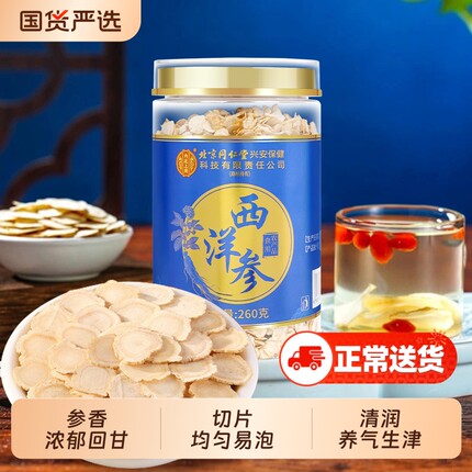 北京同仁堂西洋参官方旗舰店正品中药材260g切片泡水煲汤滋补养生