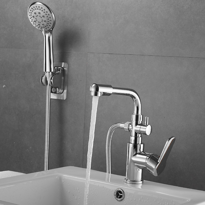 黑色洗脸盆面盆手台盆带淋浴花洒喷头洗澡洗头冷热双用水龙头外接