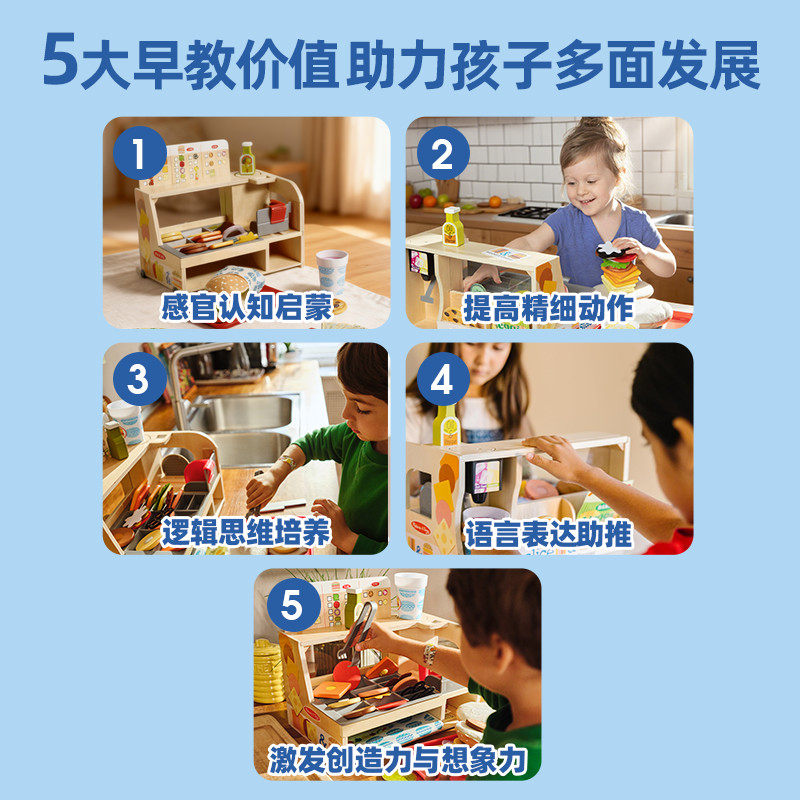 Melissa&Doug三明治操作台过家家启蒙玩具木质儿童仿真厨房烹饪