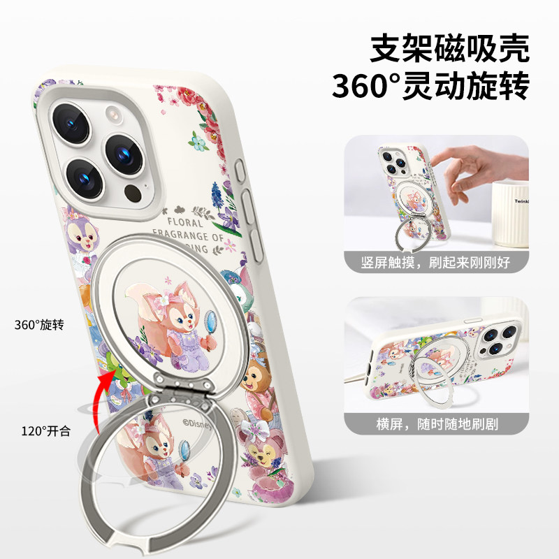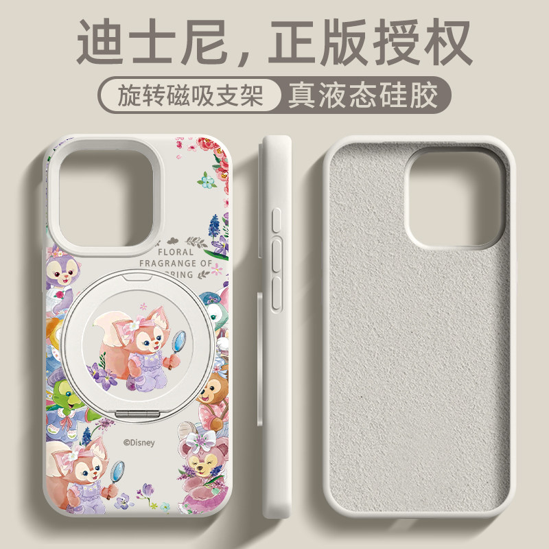 迪士尼玲娜贝儿适用苹果17手机壳磁吸带旋转支架液态硅胶iphone16星黛露15promax女生14新款plus大孔不包镜头