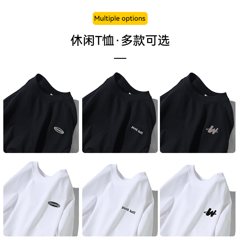 白色长袖T恤男春秋季2025新款宽松字母内搭青少年上衣纯棉体恤衫