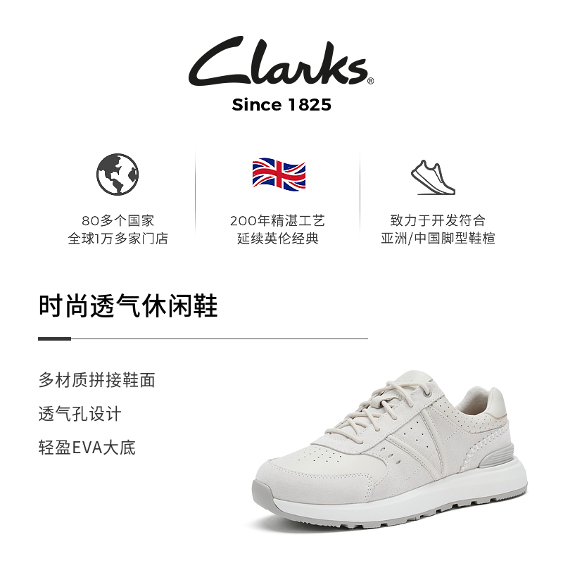 Clarks其乐Craft Motion男鞋时尚休闲鞋拼接增高透气舒适通勤职场
