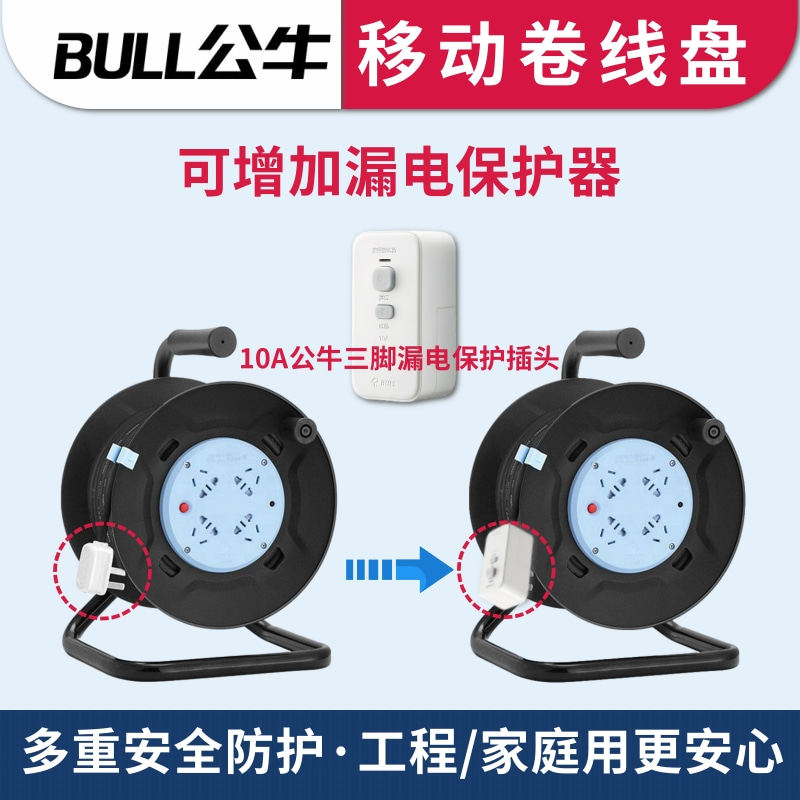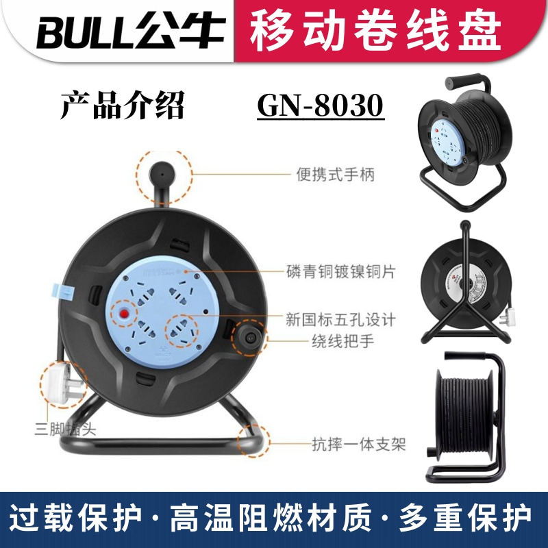 公牛线盘移动式卷线盘无线工程家用插座线轴电缆绕线盘30米拖线盘
