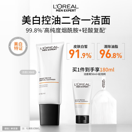 欧莱雅男士耀白洁面乳美白洗面奶控油清洁淡化痘印淡斑提亮烟酰胺