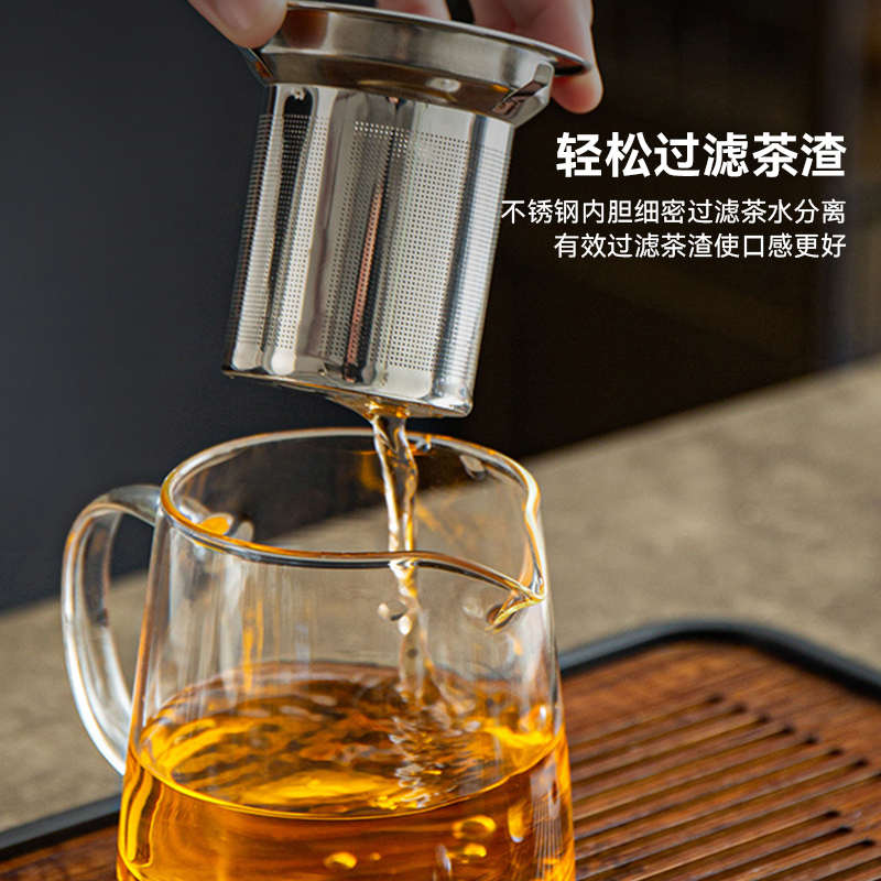 茶杯茶水分离茶道杯带盖过滤玻璃杯带把手杯子茶杯个人专用泡茶杯