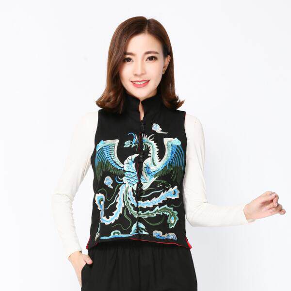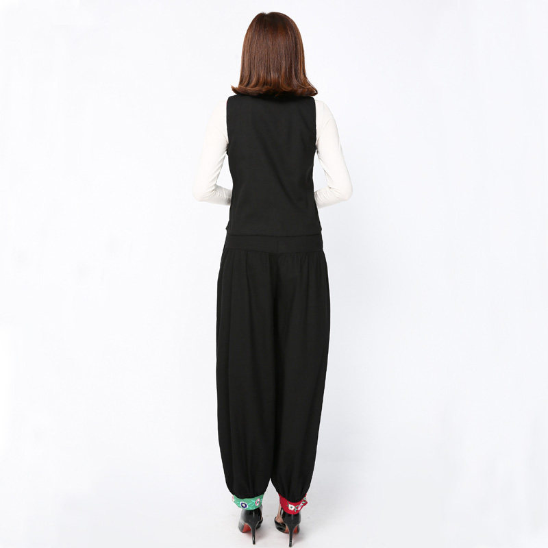 包邮中国风秋季 凤凰刺绣 短款棉麻马甲+绣花松紧腰 灯笼裤二件套