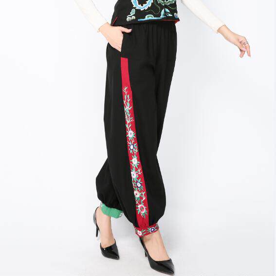 棉麻绣花松紧腰灯笼裤二件套包邮