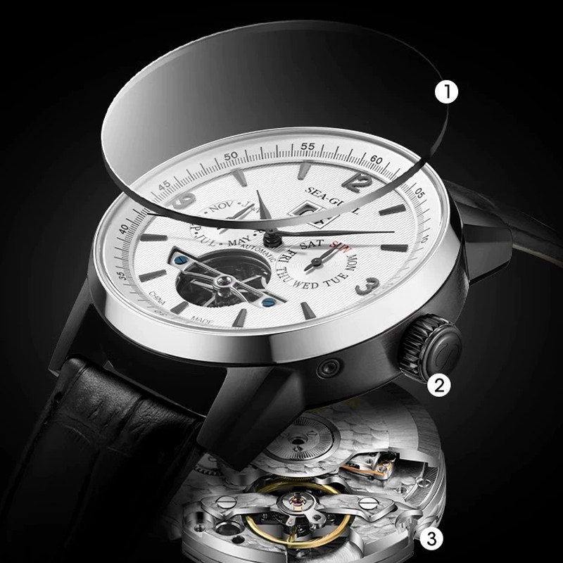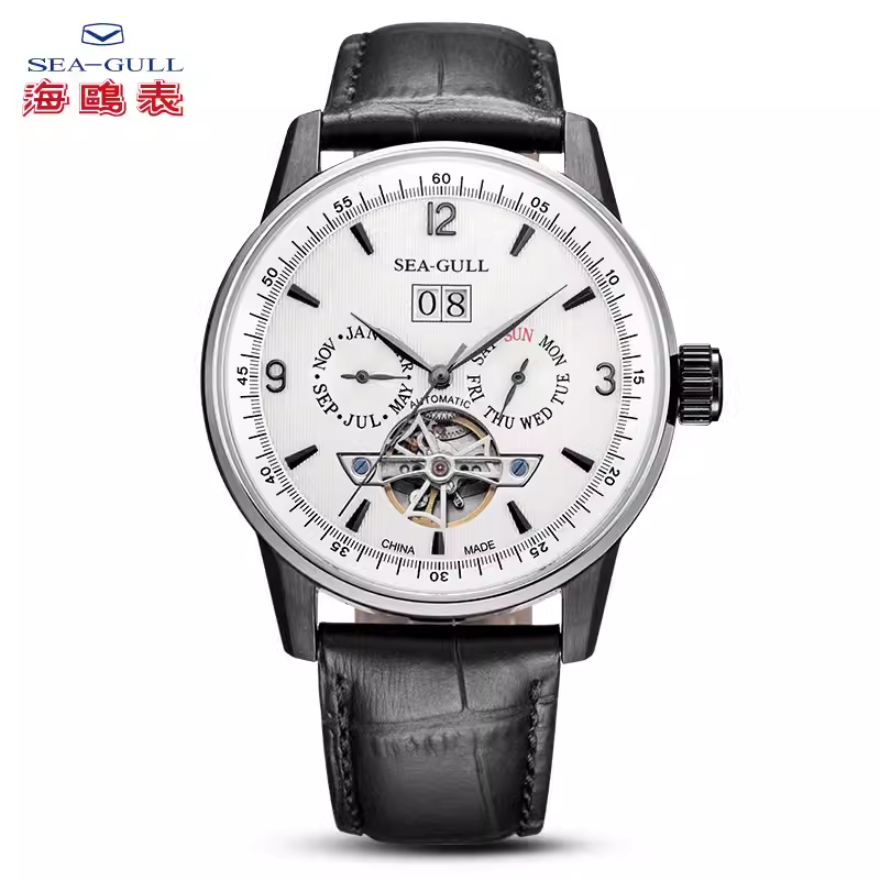 正品海鸥表男士多功能大表盘商务镂空飞轮全自动机械手表男表1328