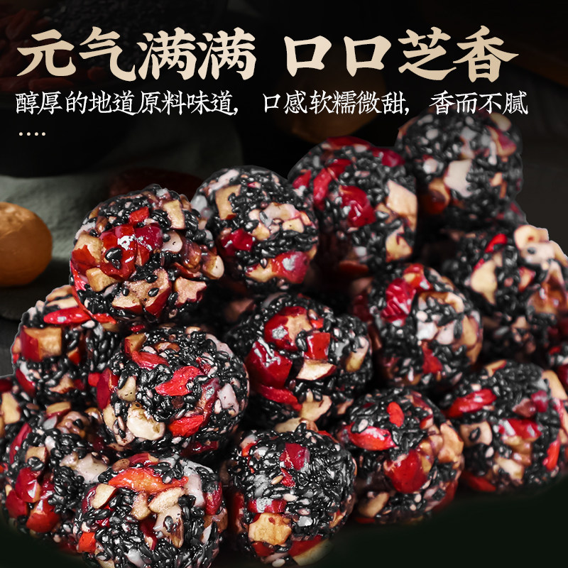 黄芪党参黑芝麻丸芝麻球红枣核桃软糕高钙休闲小零食官方旗舰店