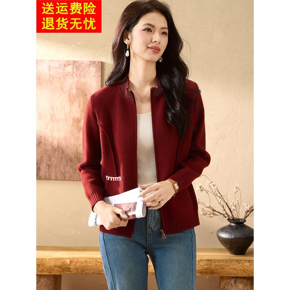 妈妈秋装洋气针织开衫短款上衣中老年时尚女装阔太太气质夹克外套