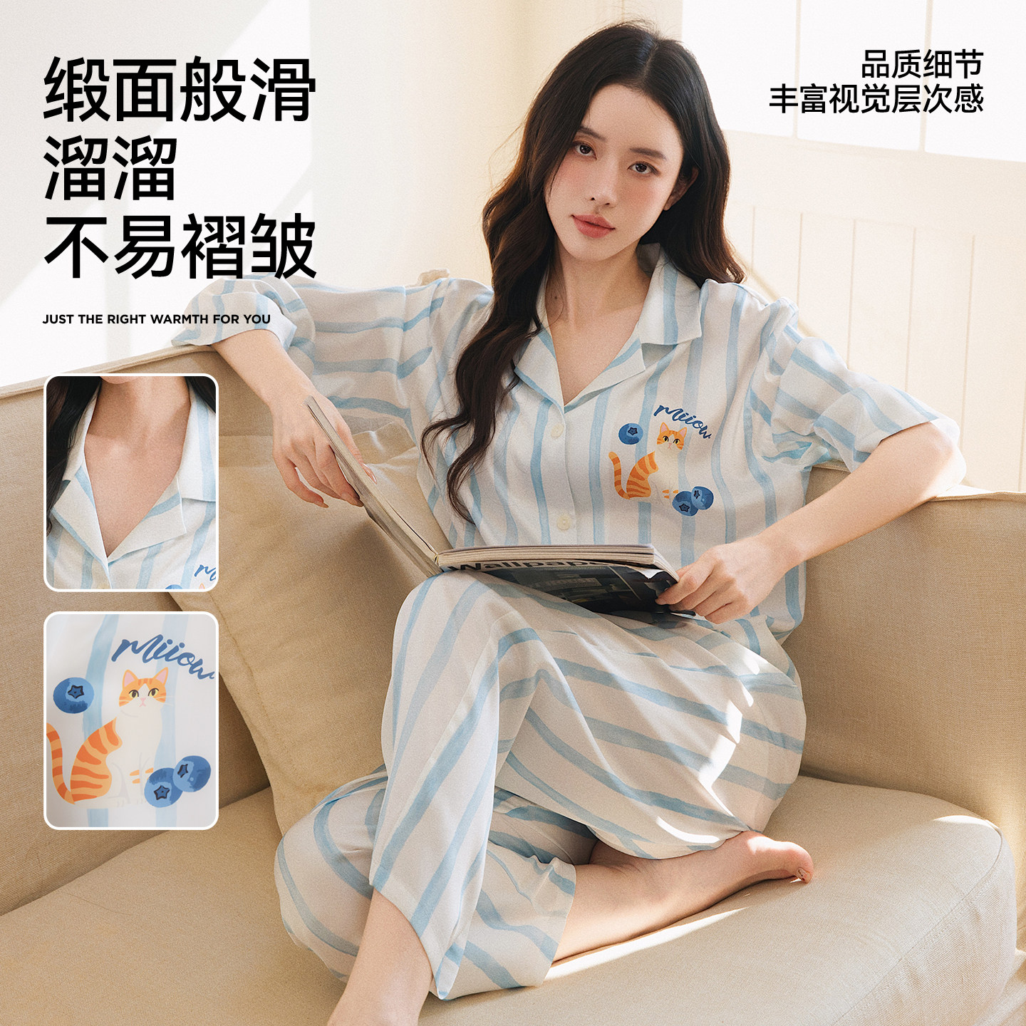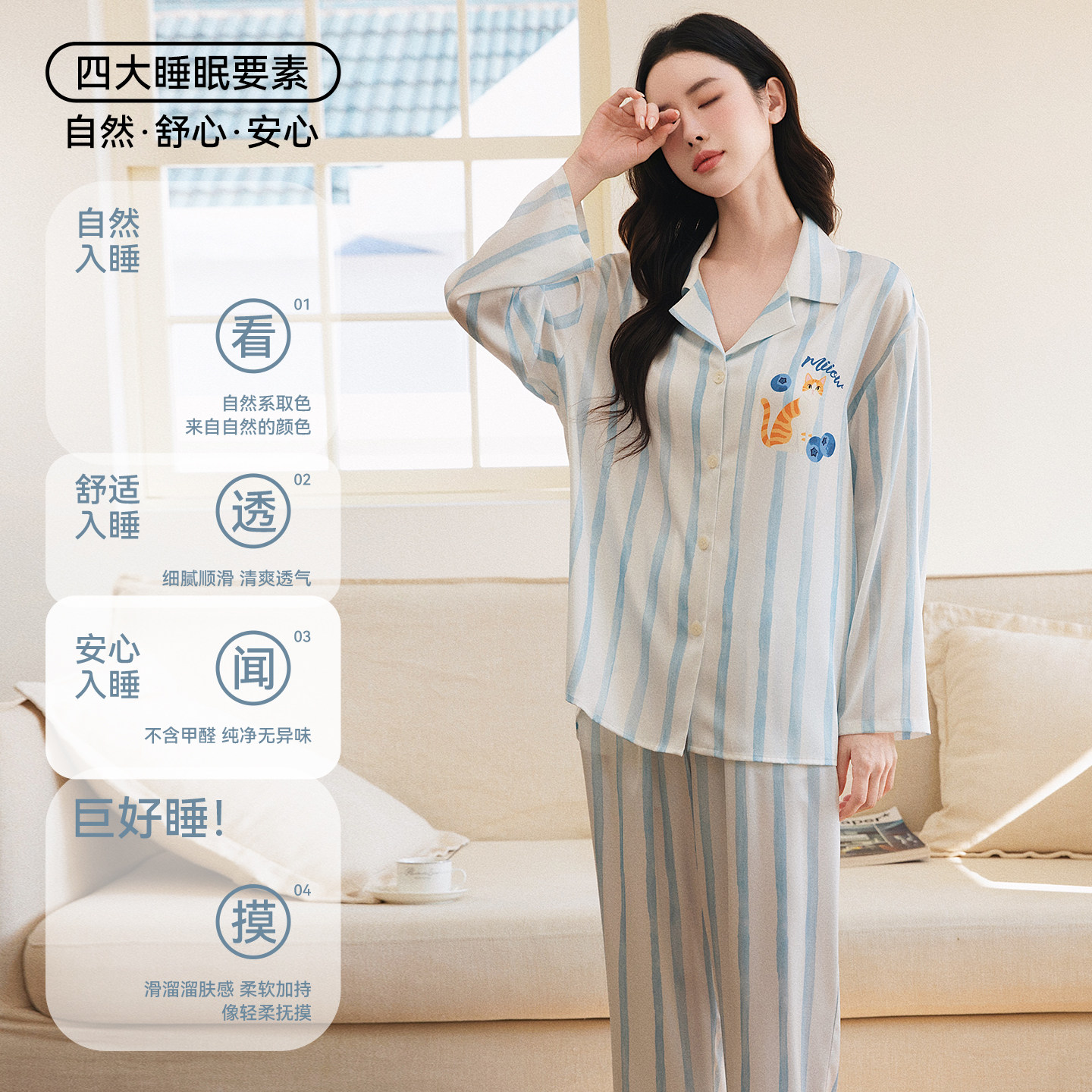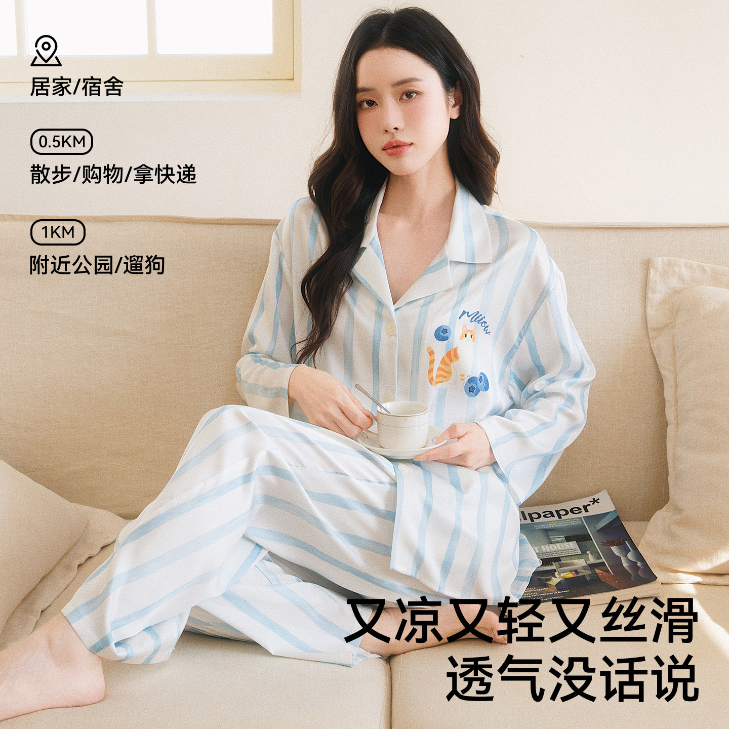猫人睡衣女冰丝凉感春夏季薄款休闲长袖高级感家居服套装2026新款