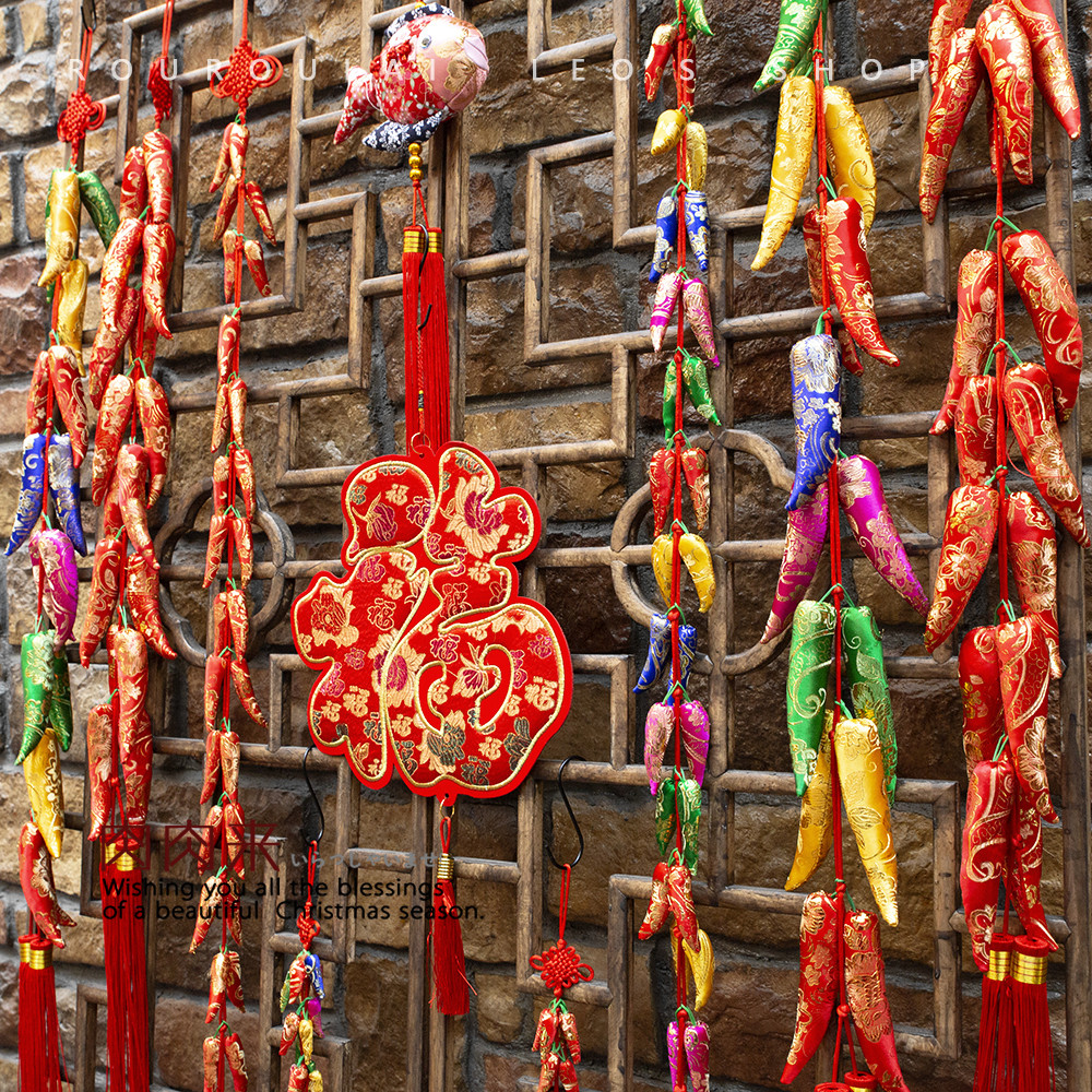 喜庆大丰收挂饰织锦缎面新年装饰 新春节挂件辣椒串花生南瓜石榴