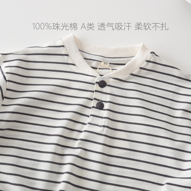 简约休闲feel~儿童短袖polo衫夏季男女童宽松条纹t恤宝宝纯棉上衣