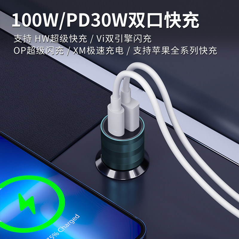 车载充电器超级快充PD30W快充100W全兼容适用苹果17/15华为vivo小米OPPO手机点烟器一拖二转换插头usb车充