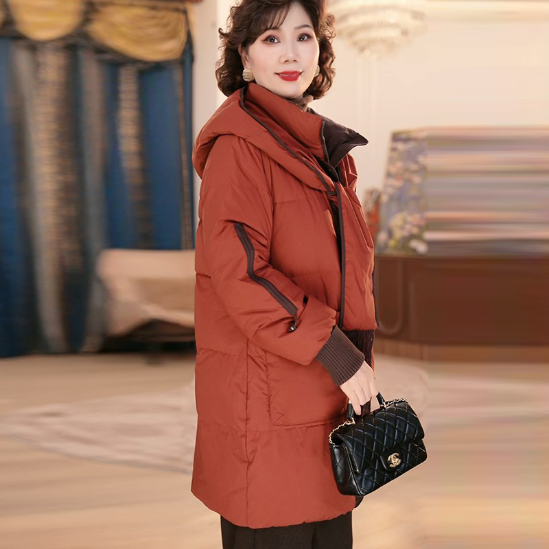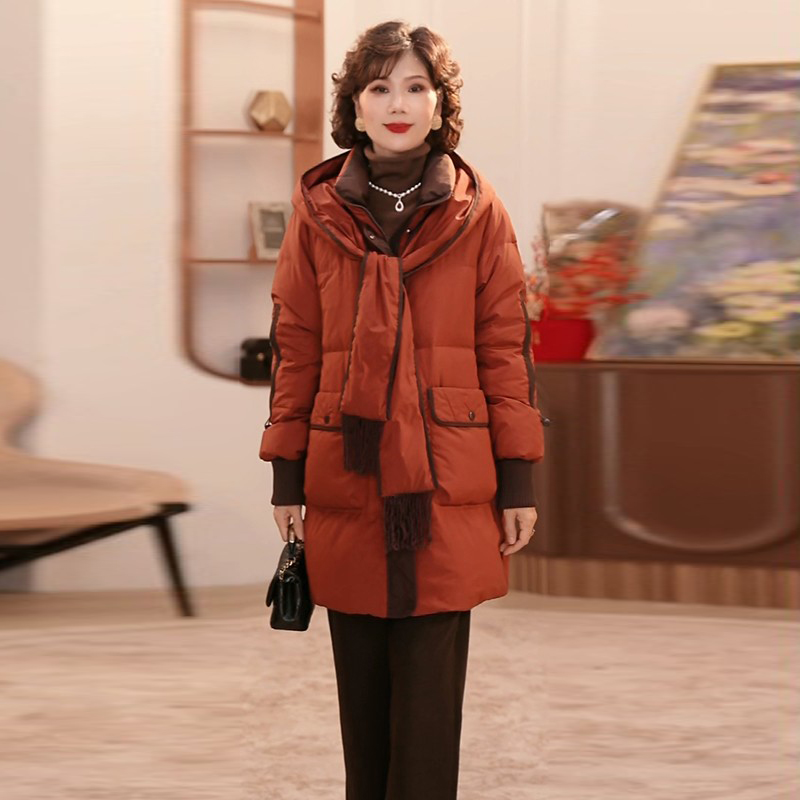 中老年妈妈装连帽羽绒服女2025冬季新款时尚时尚百搭围巾保暖外套