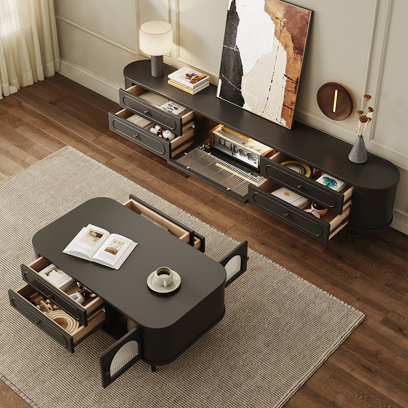 法式实木电视柜客厅家用奶油风轻奢电视机柜茶几组合储物柜复古柜