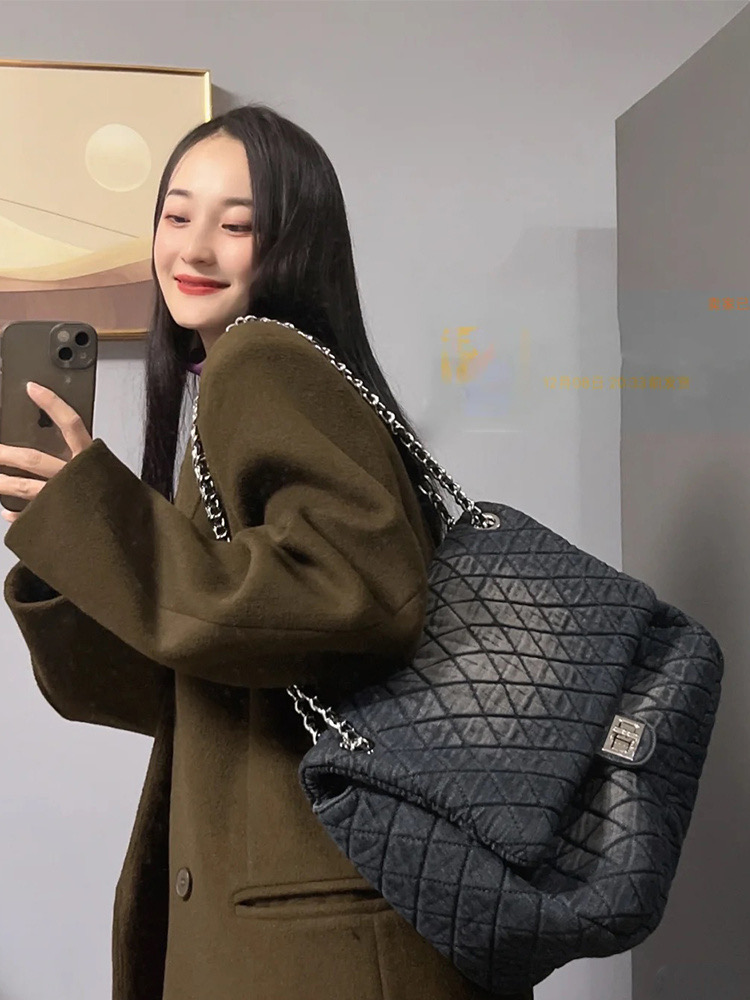 2025新款水墨染牛仔流浪包菱格链条百搭短途旅行托特包单肩斜挎包