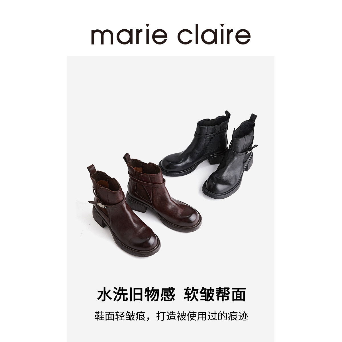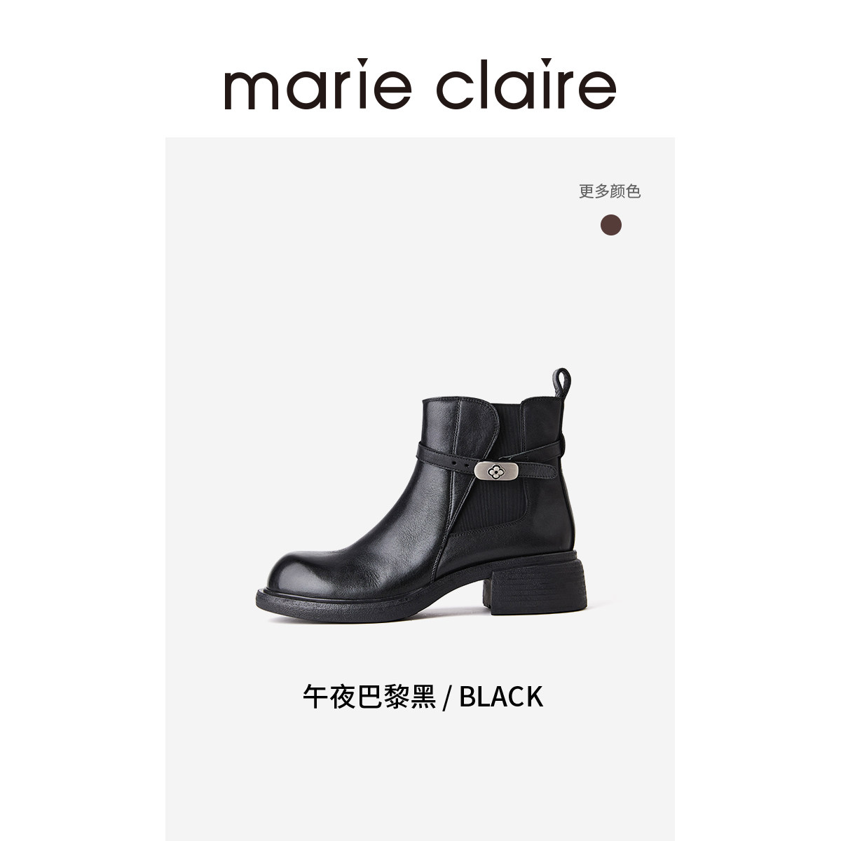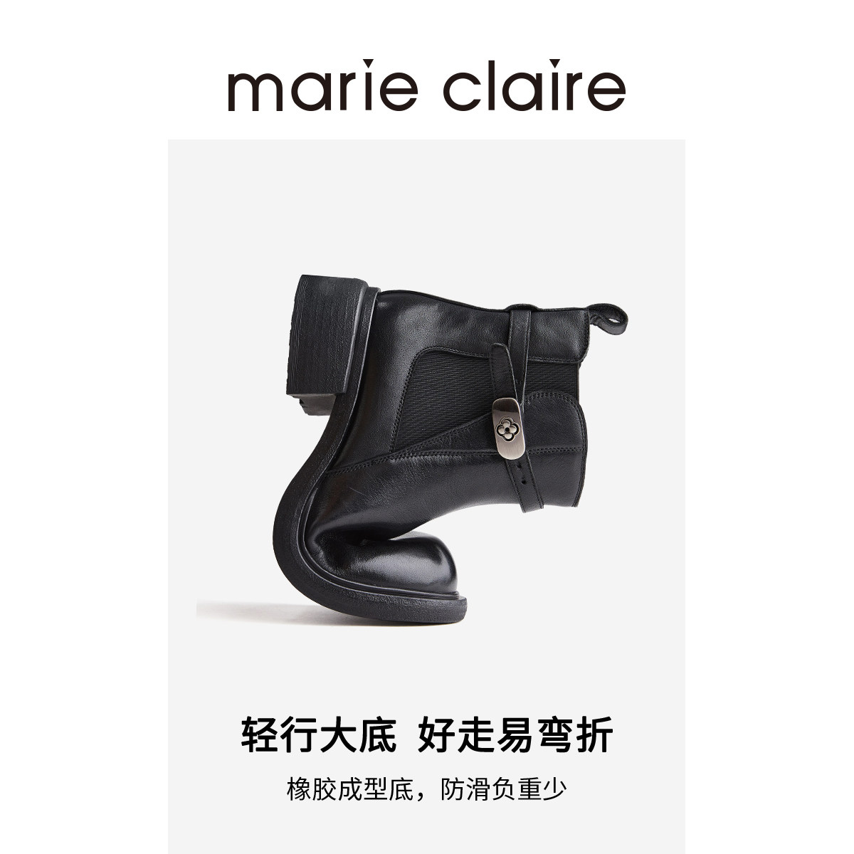 MC女鞋花扣切尔西短靴2025年冬季水洗圆头短靴女marieclaire女鞋