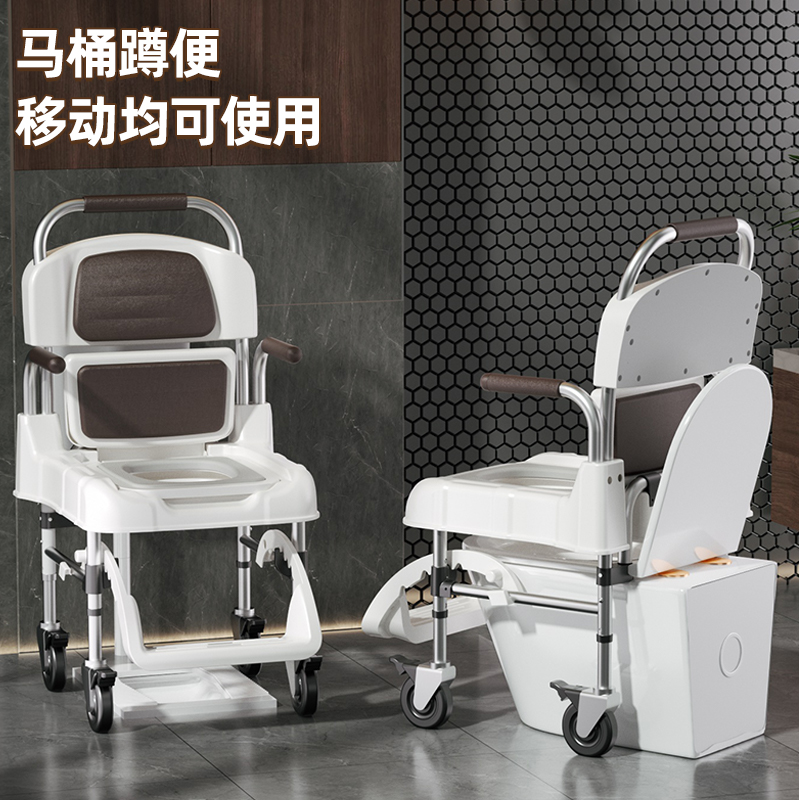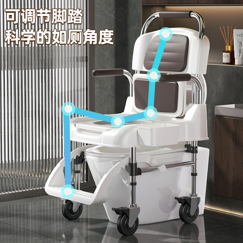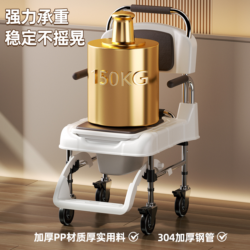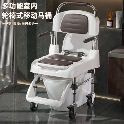 老人家用移动马桶可推行成人坐便器室内孕妇病人不锈钢轮椅坐便椅