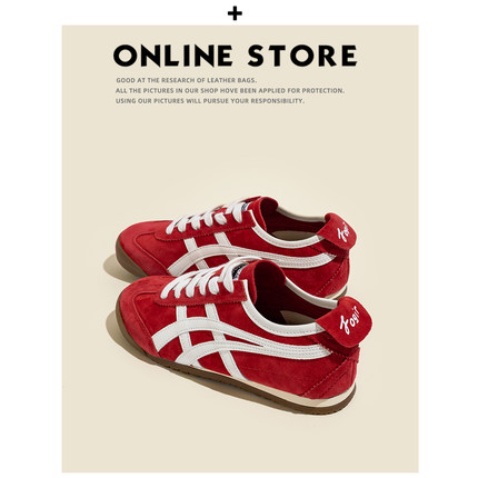 真皮版!复古红色内增高德训鞋女2025新款春季平底运动阿甘休闲鞋