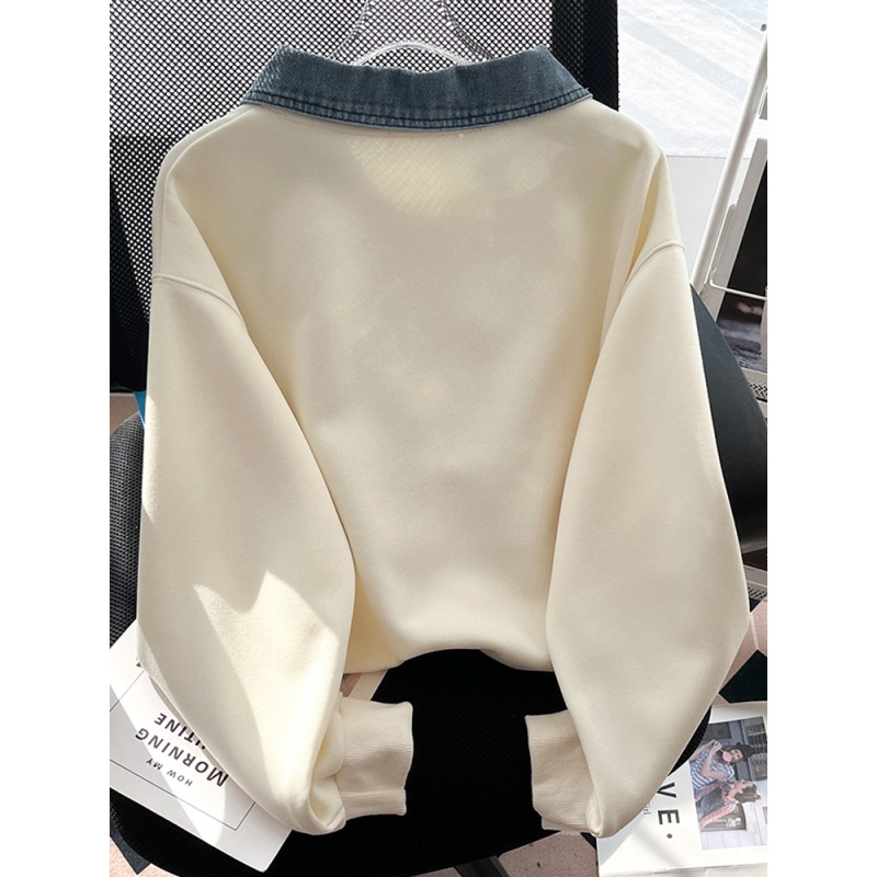 奥特莱斯~清仓撤柜polo领牛仔拼接加厚卫衣女秋冬新款假两件外套