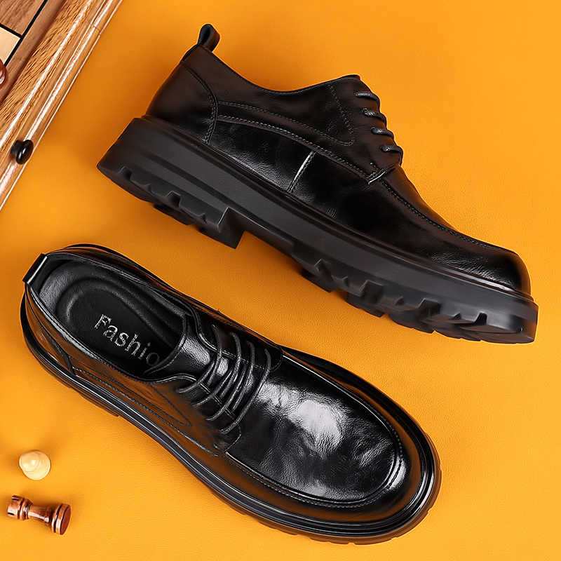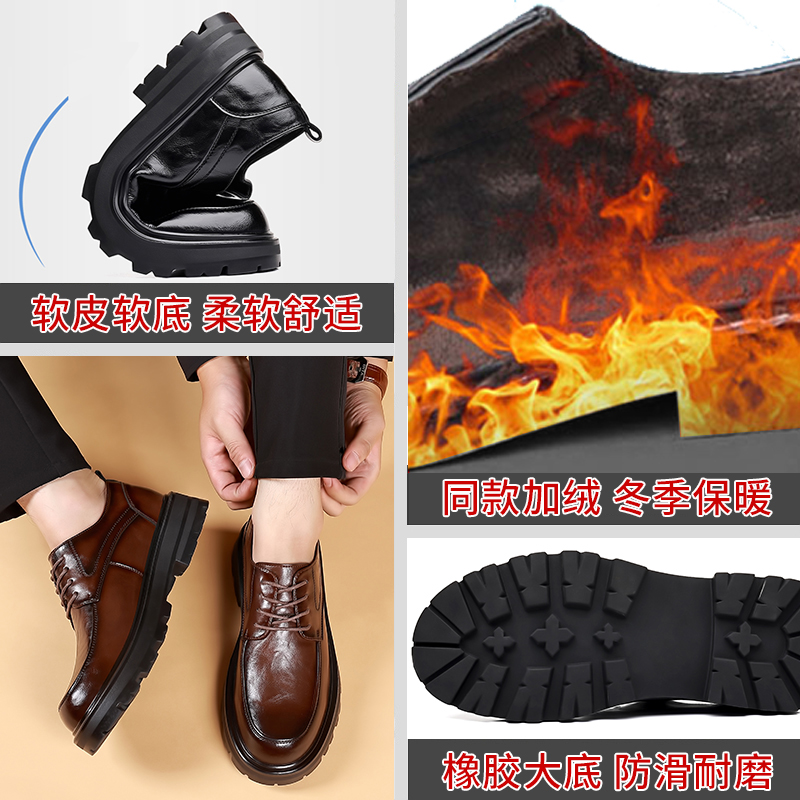 皮鞋男款休闲冬季加绒棉大头软底厚底男士商务正装圆头马丁靴