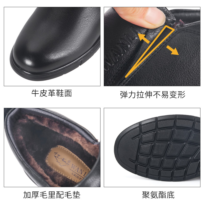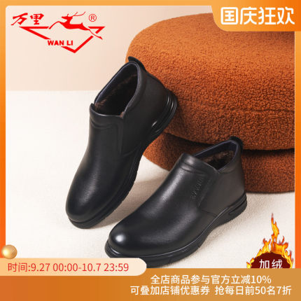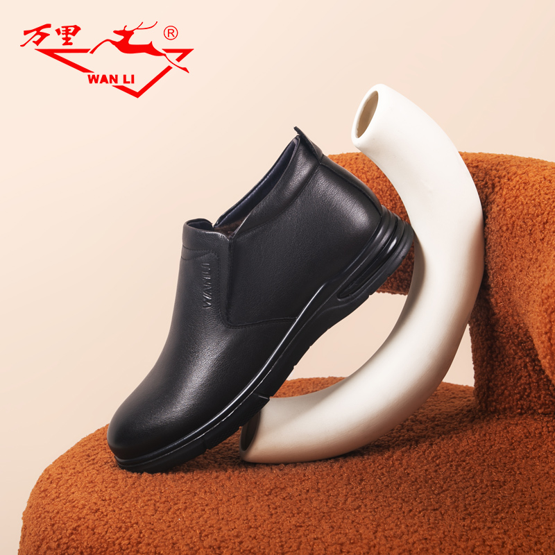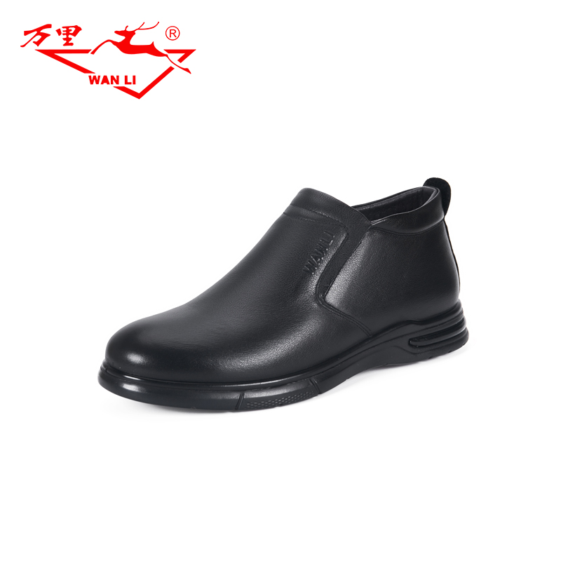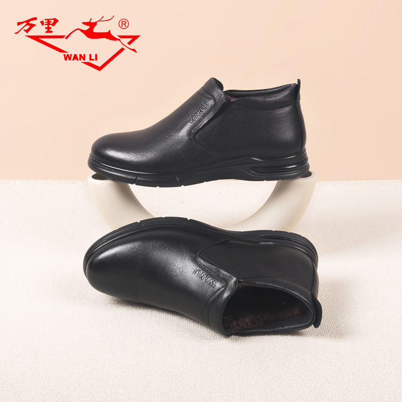 万里冬季新款加绒棉鞋真皮一脚蹬男鞋圆头商务休闲鞋HYT5240