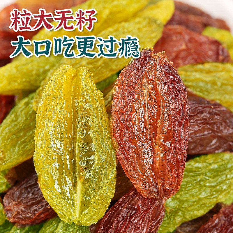 特大提子干葡萄干新疆吐鲁番特产散装无籽超大颗粒绿红香妃王500g
