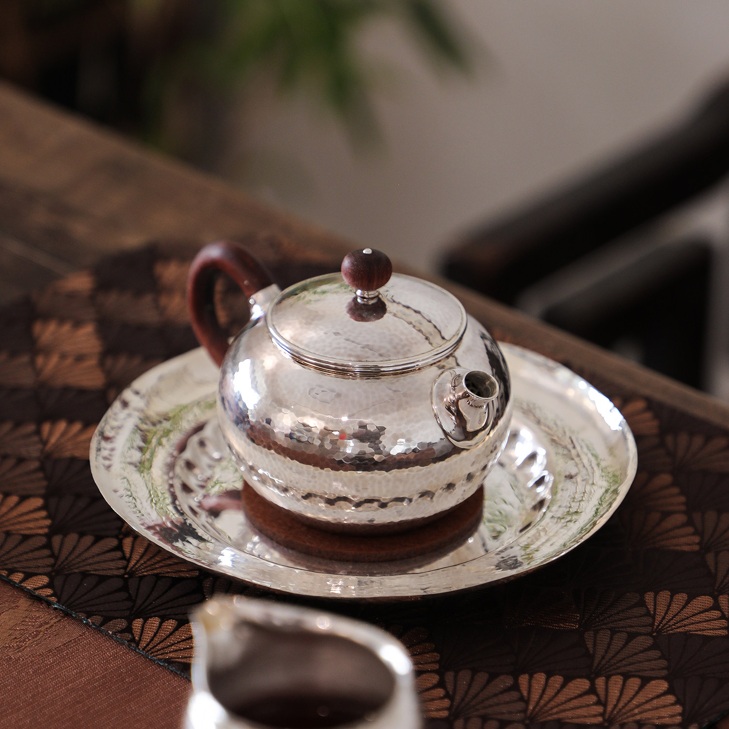 纯银时代 大圆满纯银泡茶壶足银999纯手工茶壶古朴防烫银壶200ml