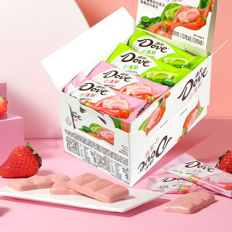 德芙抹茶曲奇草莓白巧克力混搭盒装13克*16条小清新什锦巧克力