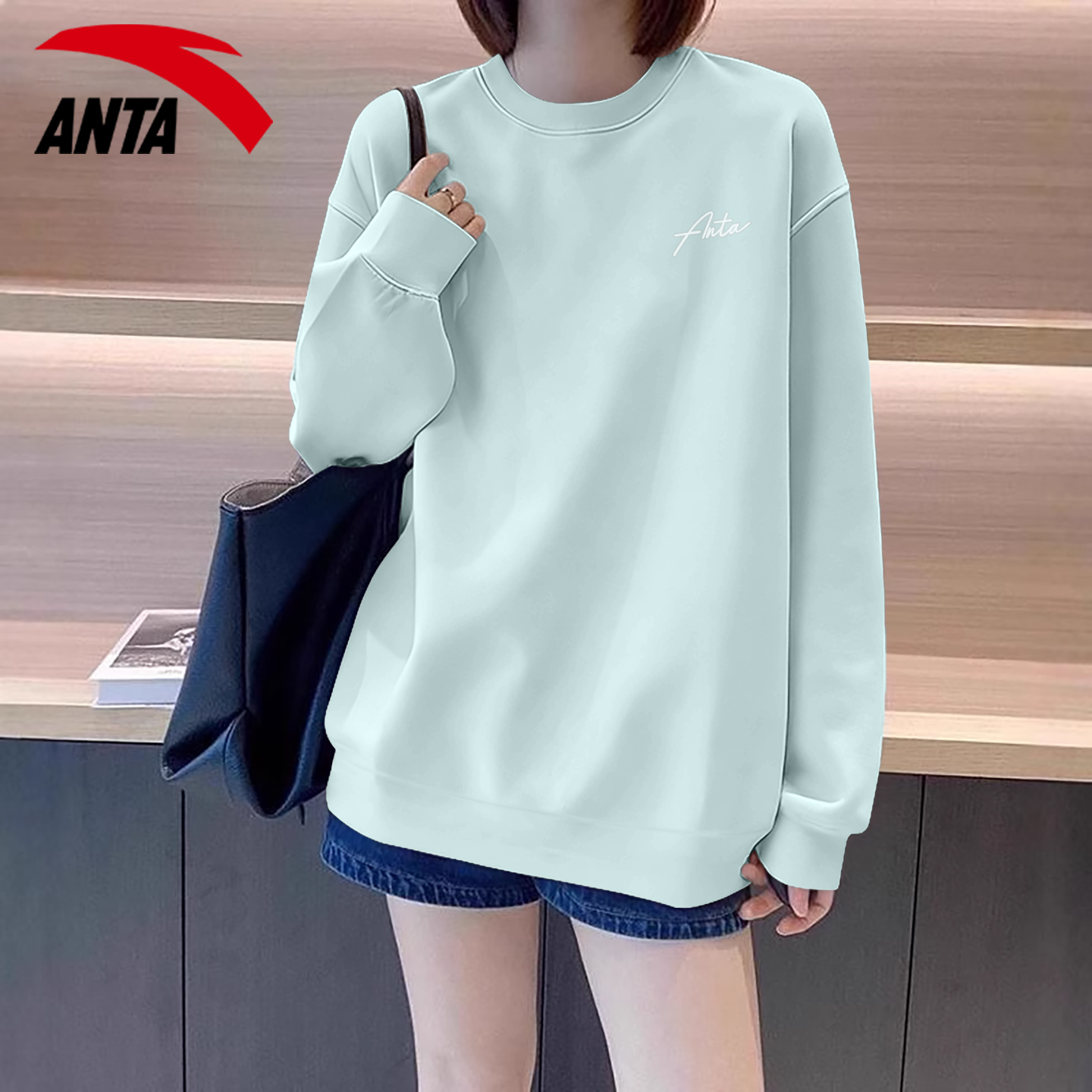 安踏纯色卫衣女秋冬新款宽松大码圆领运动服时尚百搭休闲套头长袖