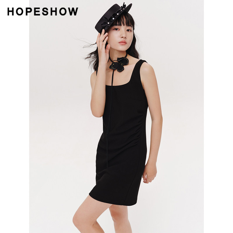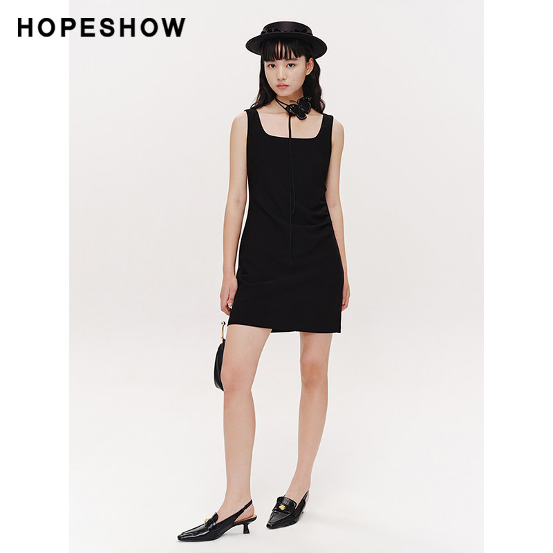 【直播专享低价好物】红袖春新款女装褶皱收腰方领套头背心连衣裙