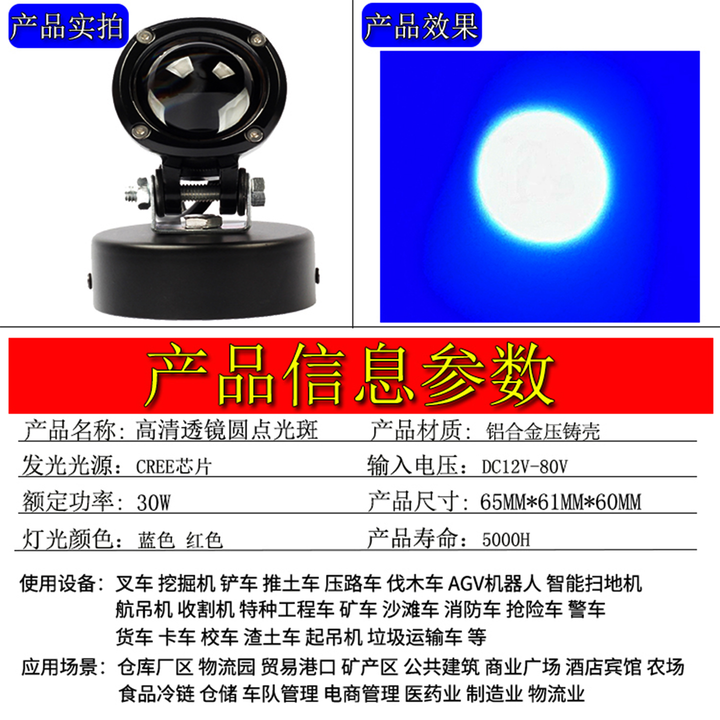 Y01款蓝光AGV叉车安全边界警示防撞指示倒车示宽灯圆点区域示廓灯