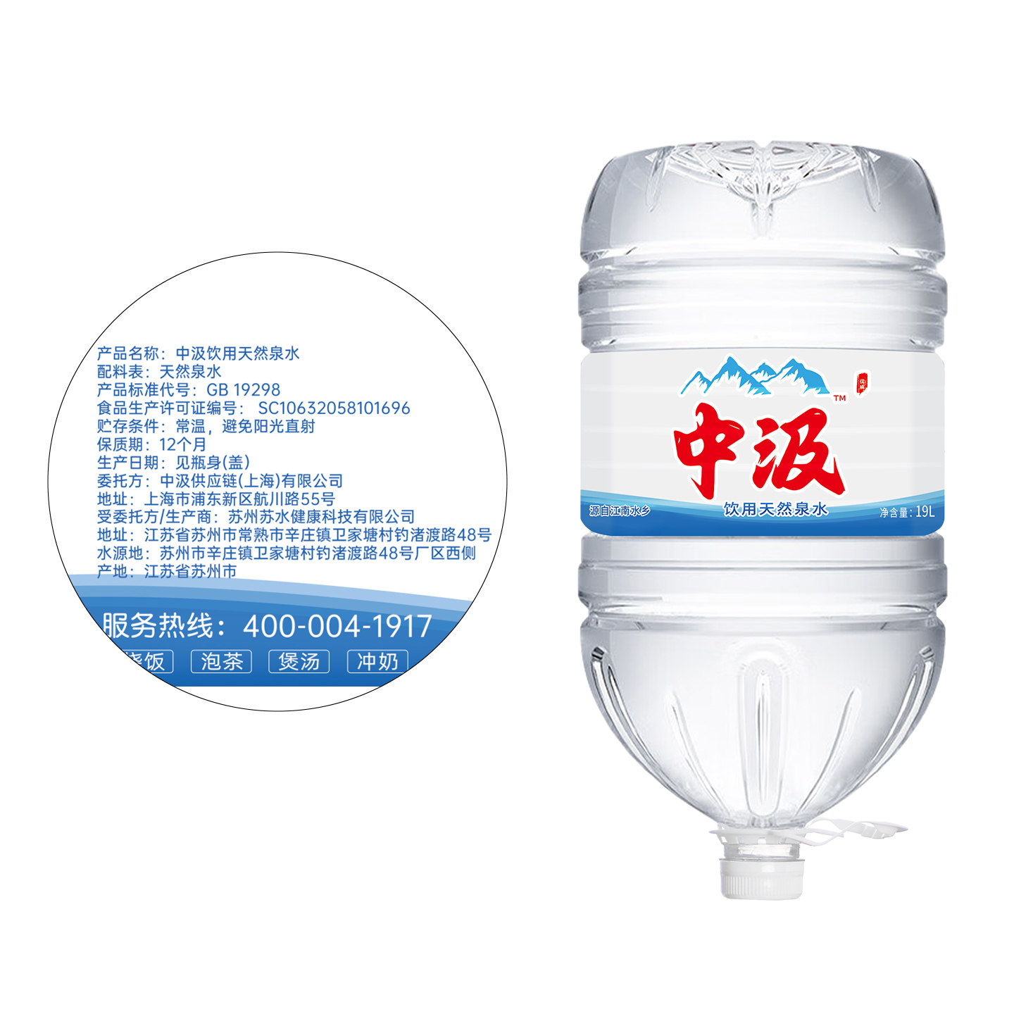 中汲饮用天然泉水19l*2桶大桶装泡茶饮用水特批价非矿泉水直饮水