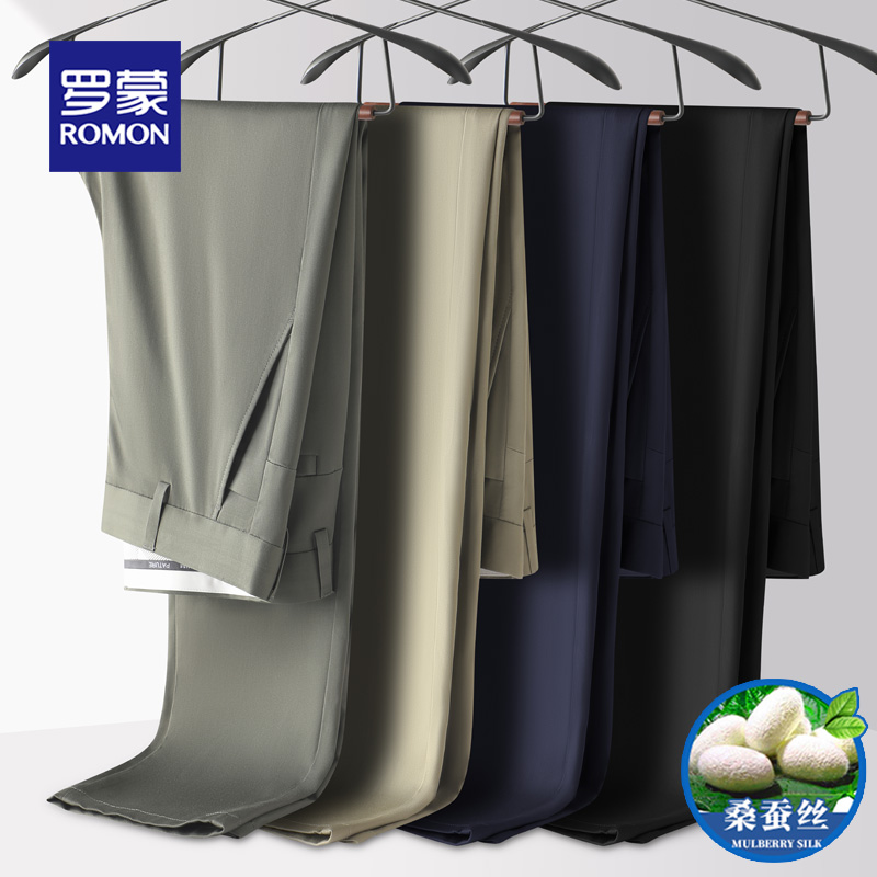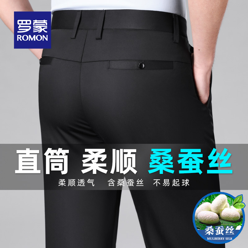 罗蒙商务男士桑蚕丝休闲裤2025夏季新款高端简约抗皱直筒百搭男裤