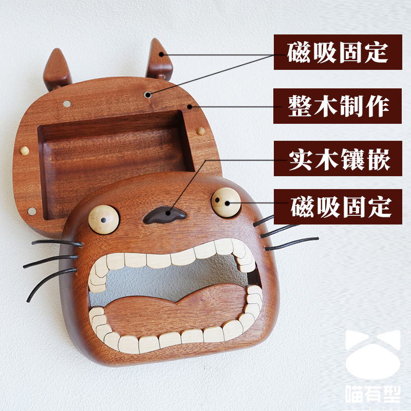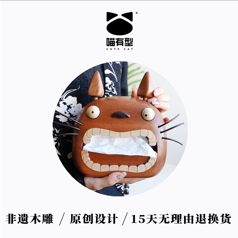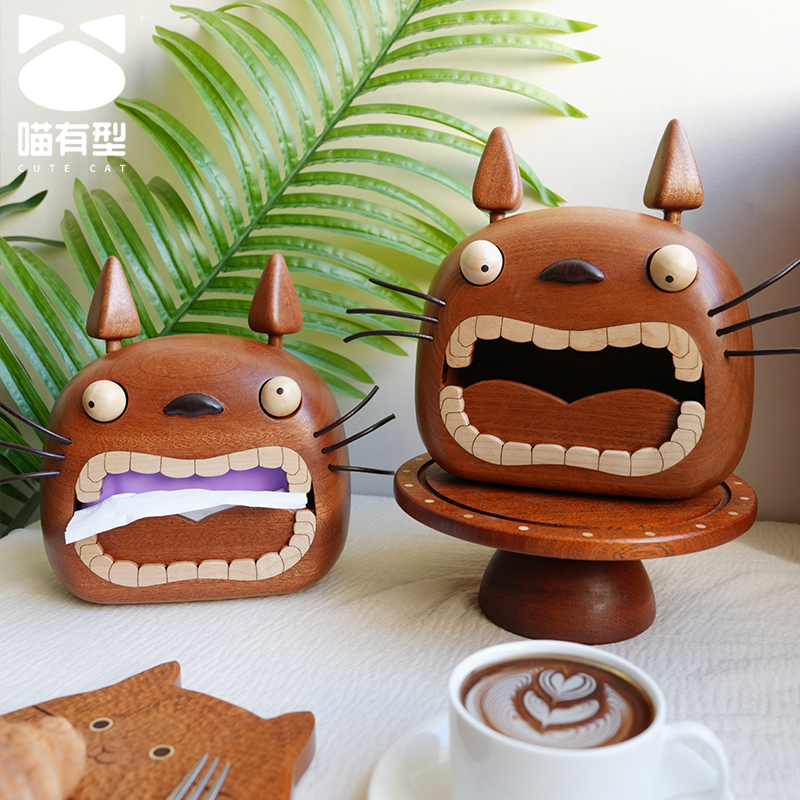 喵有型龙猫实木纸巾盒抽纸盒子创意桌面家用收纳盒子客厅卧室高级