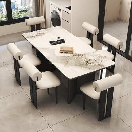 轻奢意式极简小户型长方形家用现代简约风岩板餐桌椅组合吃饭桌子