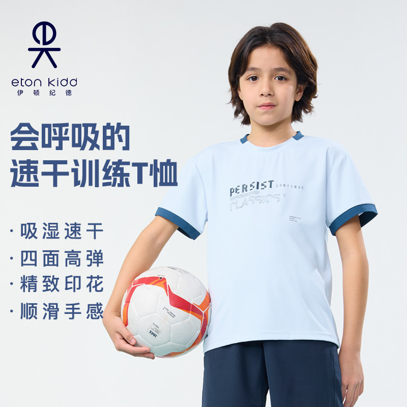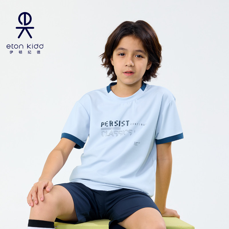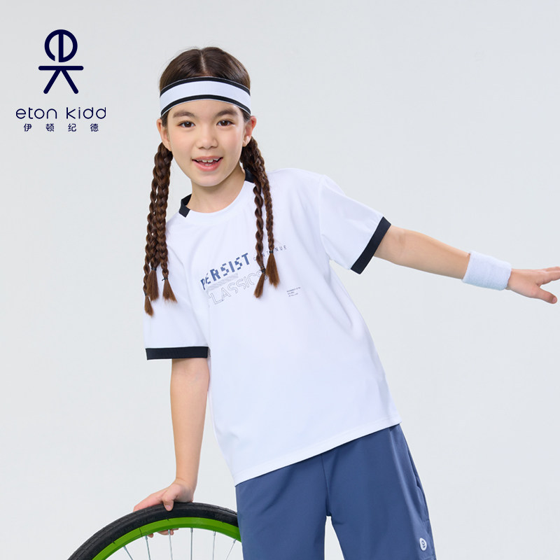 伊顿纪德男女童2025夏季新款学院圆领短袖T恤儿童装运动t 25T920