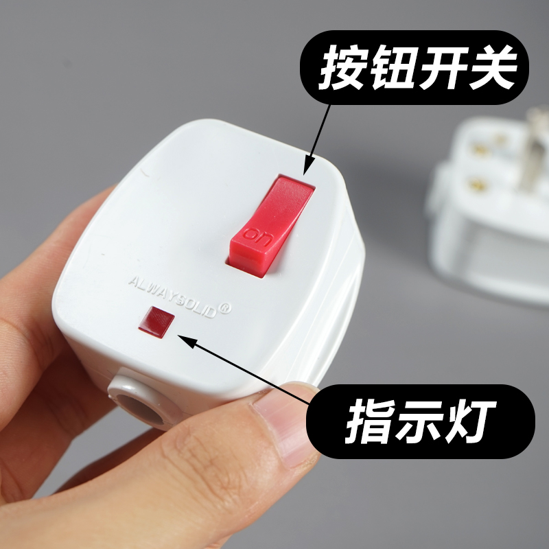 永坚带开关指示灯10A三扁插头250V高品质工业可接线电源插头国标