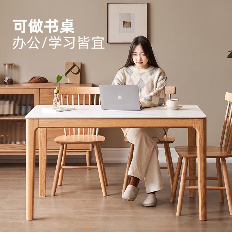 原始原素实木岩板餐桌现代橡木饭桌餐厅家用吃饭桌椅子组合K7111