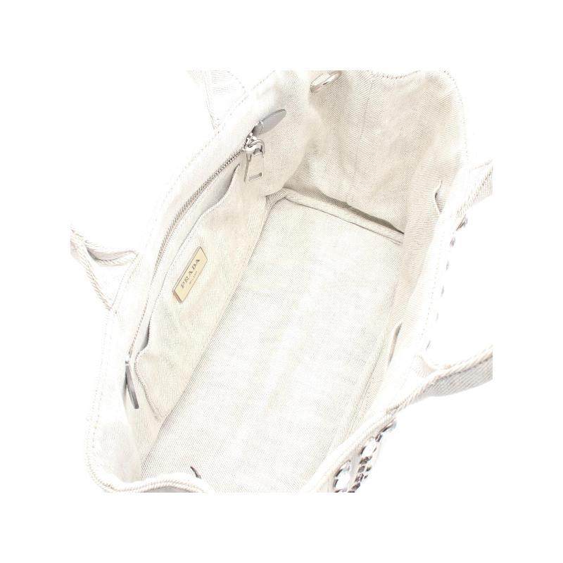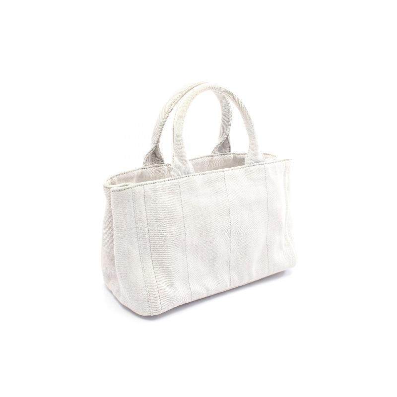 中古Prada普拉达女包B级9新2WAY两用款牛仔布托特包灰色