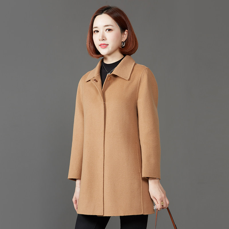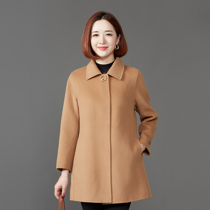 中年妈妈秋装中款羊绒大衣女小个子短款双面羊毛呢子洋气秋冬外套