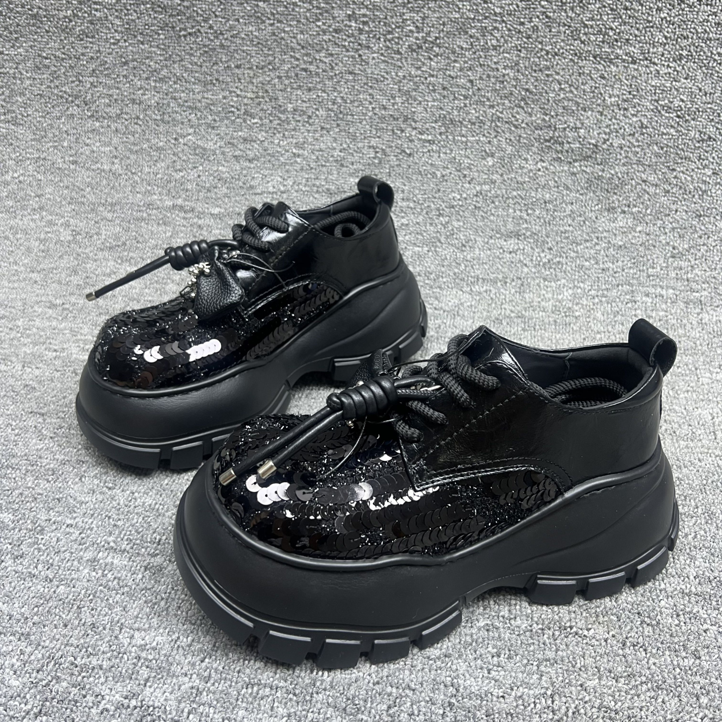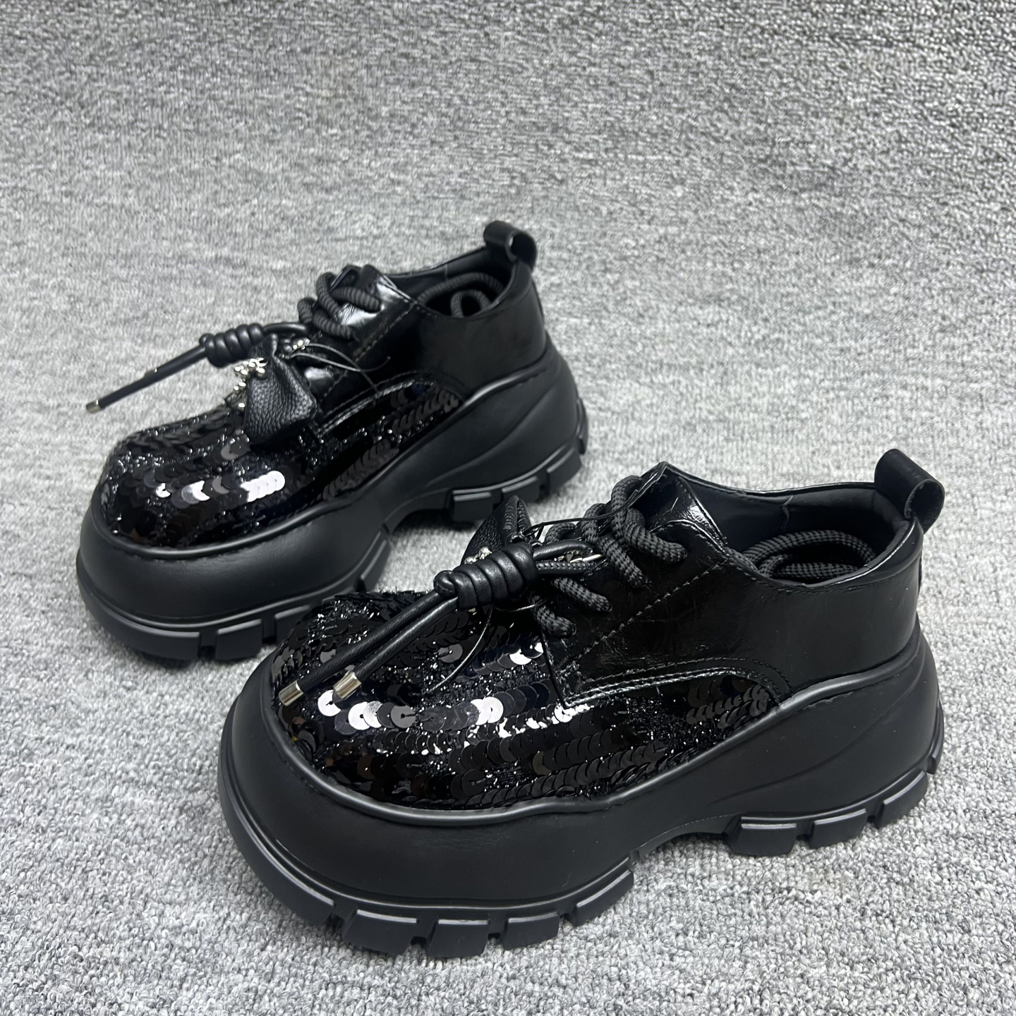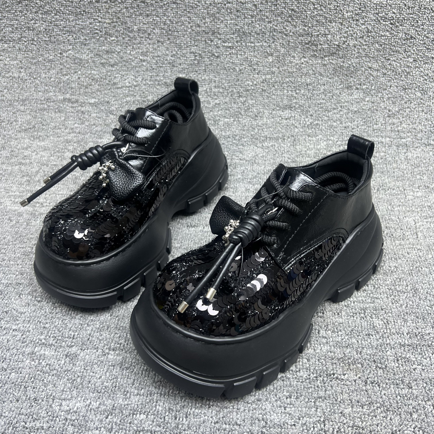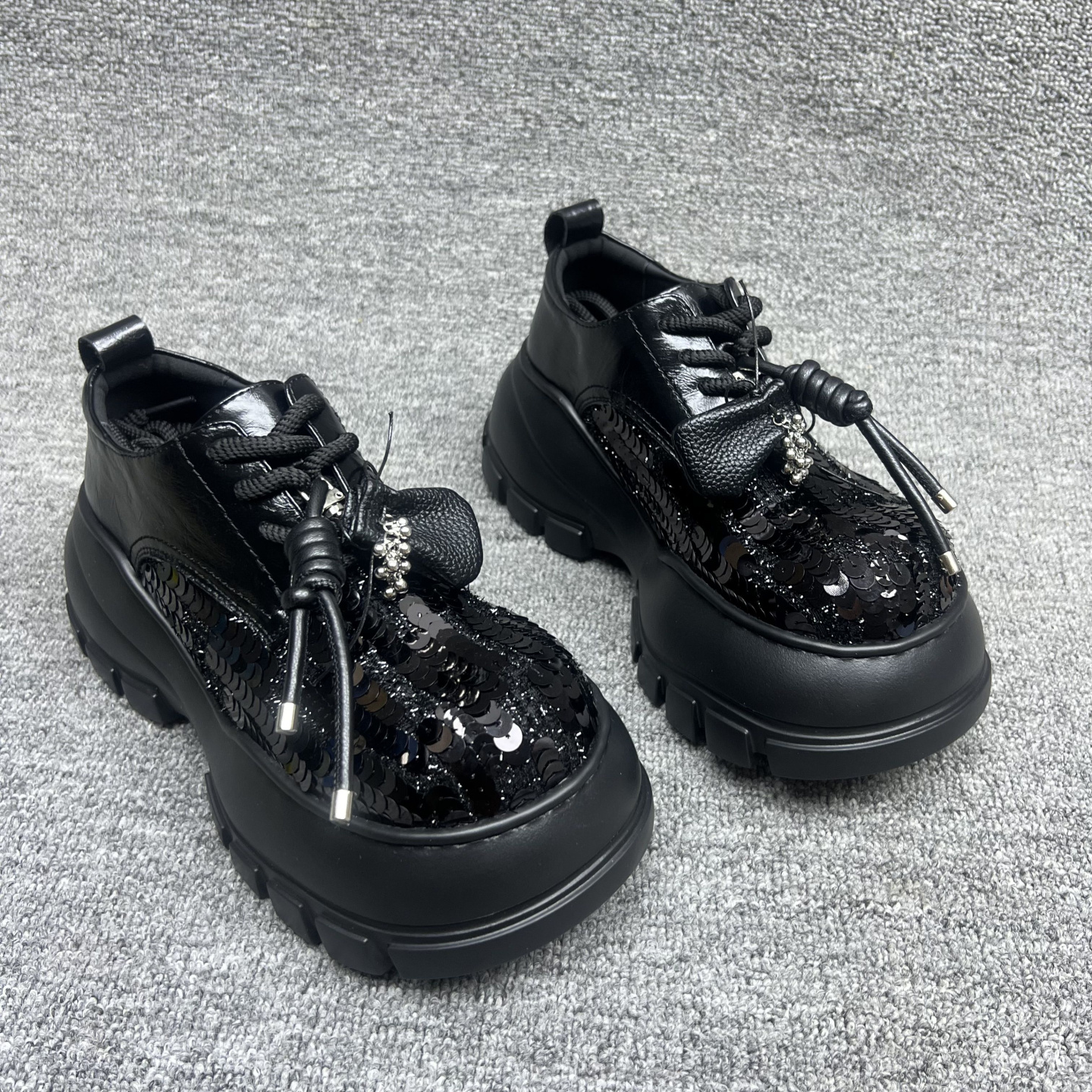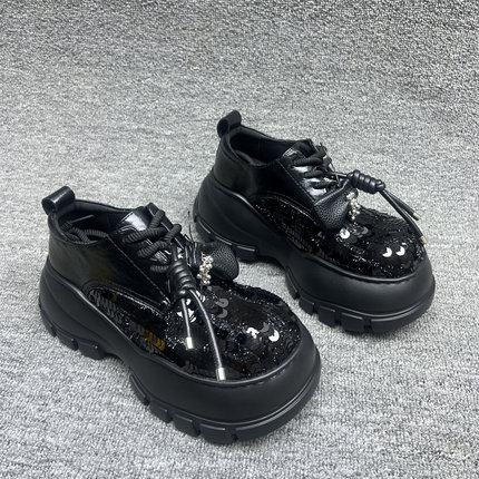 乐魔女鞋2025秋季新款欧货真皮亮片系带厚底增高乐福鞋时尚单鞋女