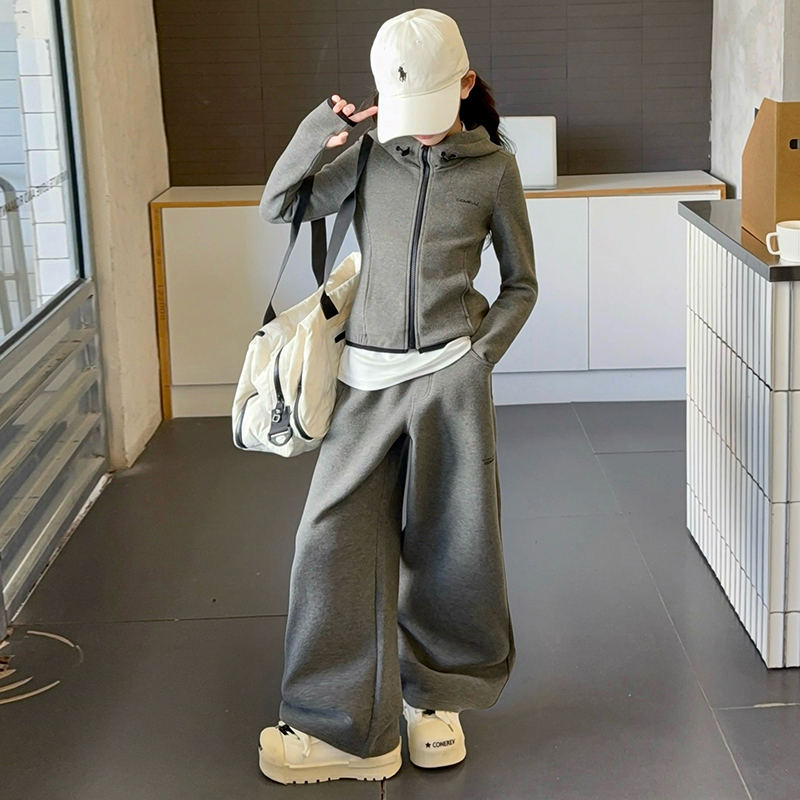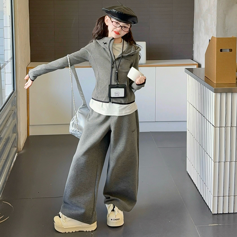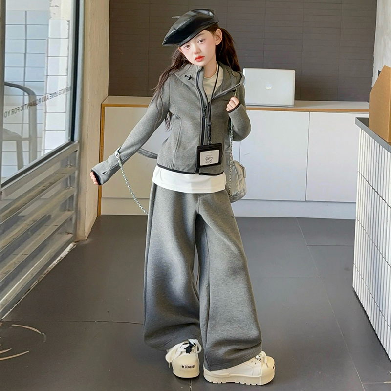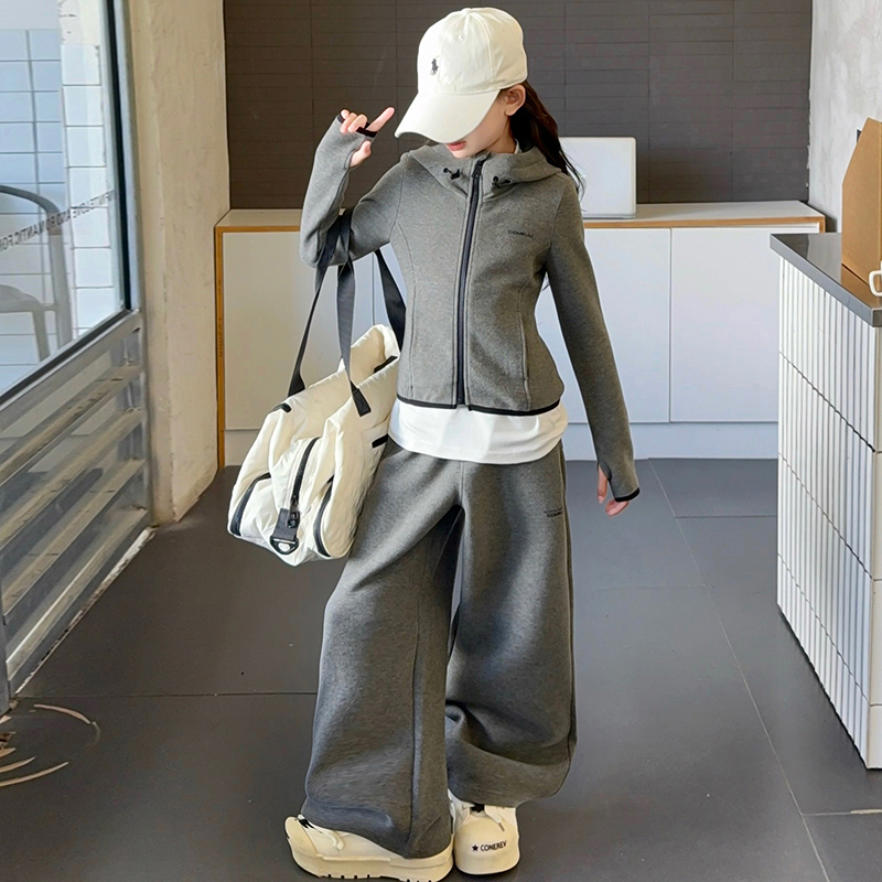 女童卫衣套装春秋装新款女孩中大童运动连帽儿童嵌绳童装两件套潮