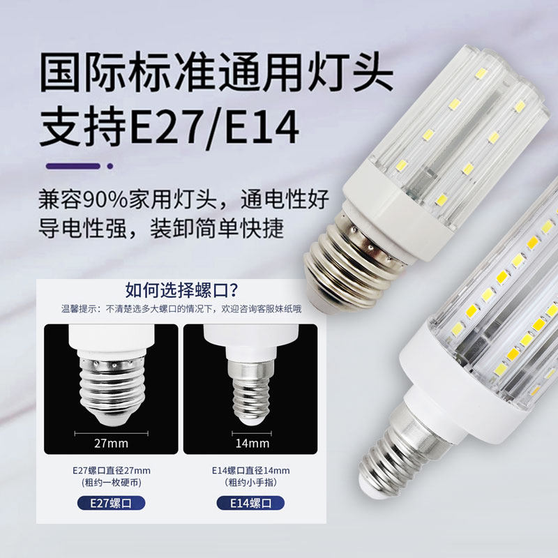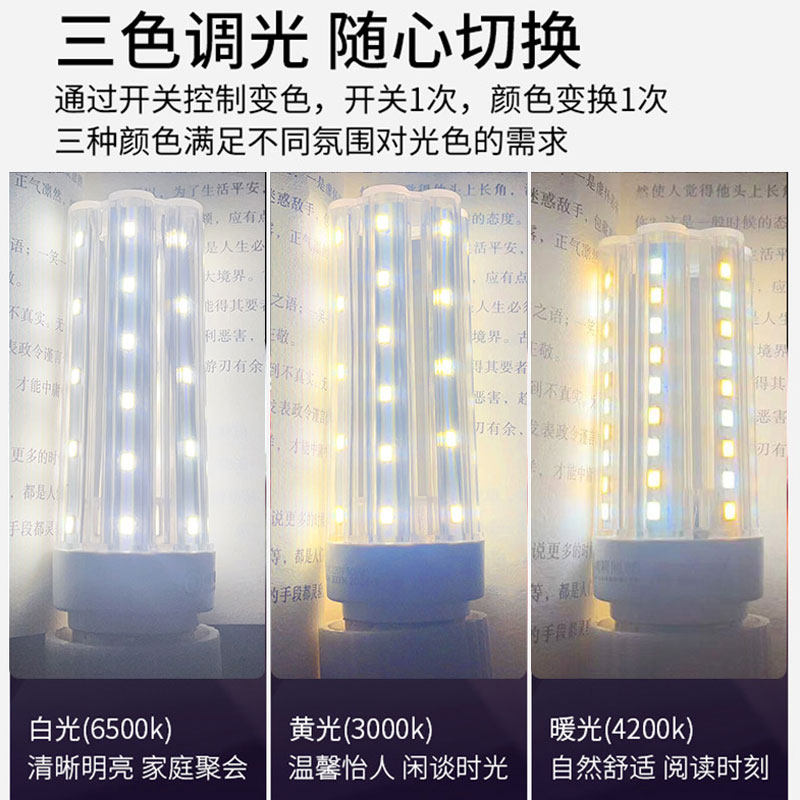 led玉米灯泡足功率家用螺口吸顶吊灯水晶灯三色变光e14光源节能灯
