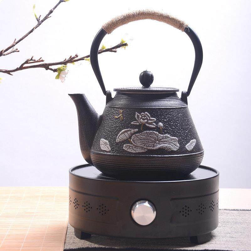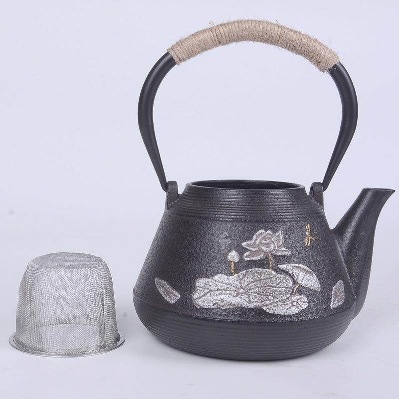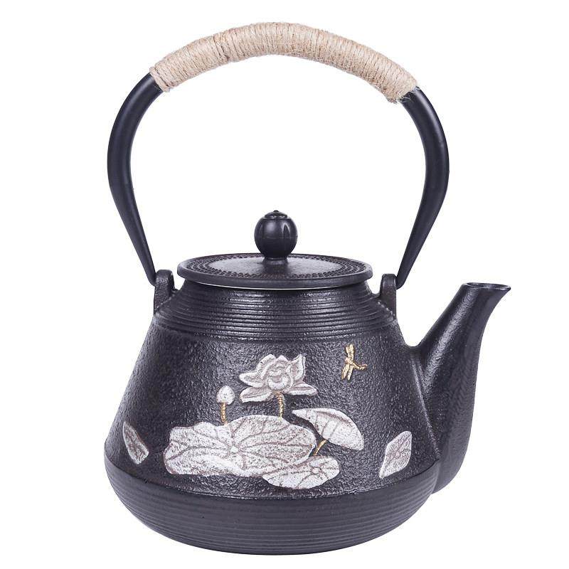 典工堂大荷叶铁壶铸铁壶日式无涂层生铁壶家用覆古黑晶炉生铁茶壶