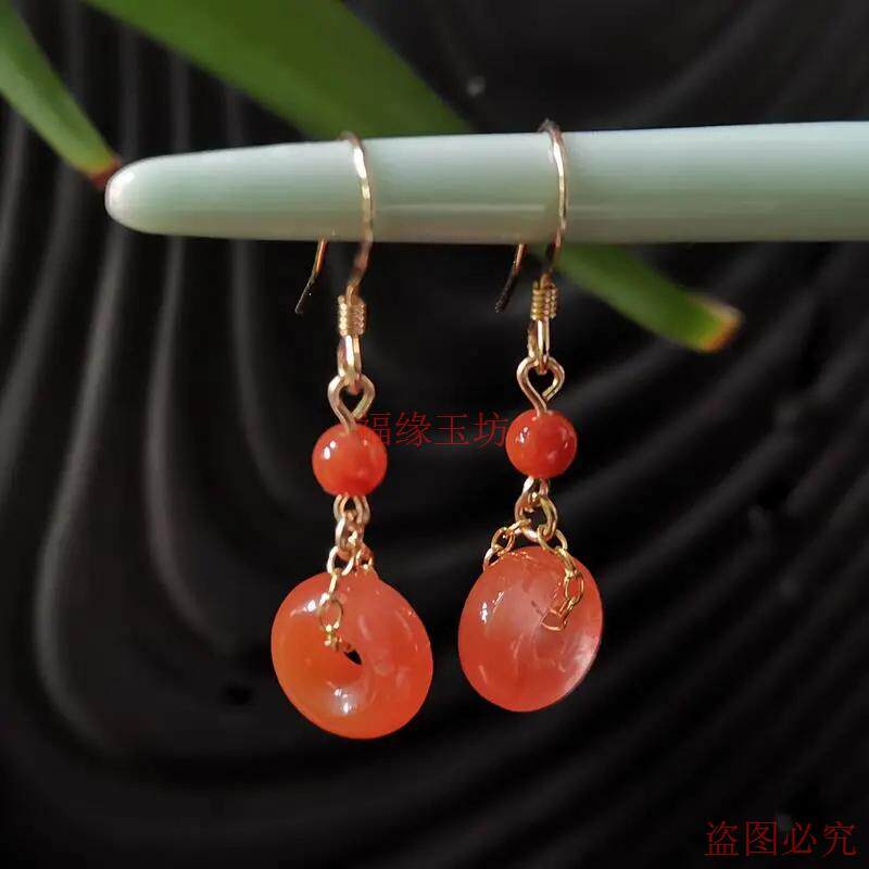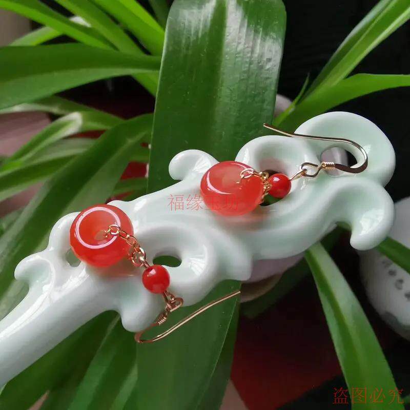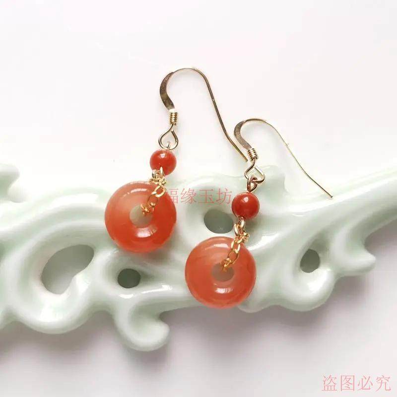 正品天然南红玛瑙耳坠平安扣耳环精致气质甜甜圈耳饰