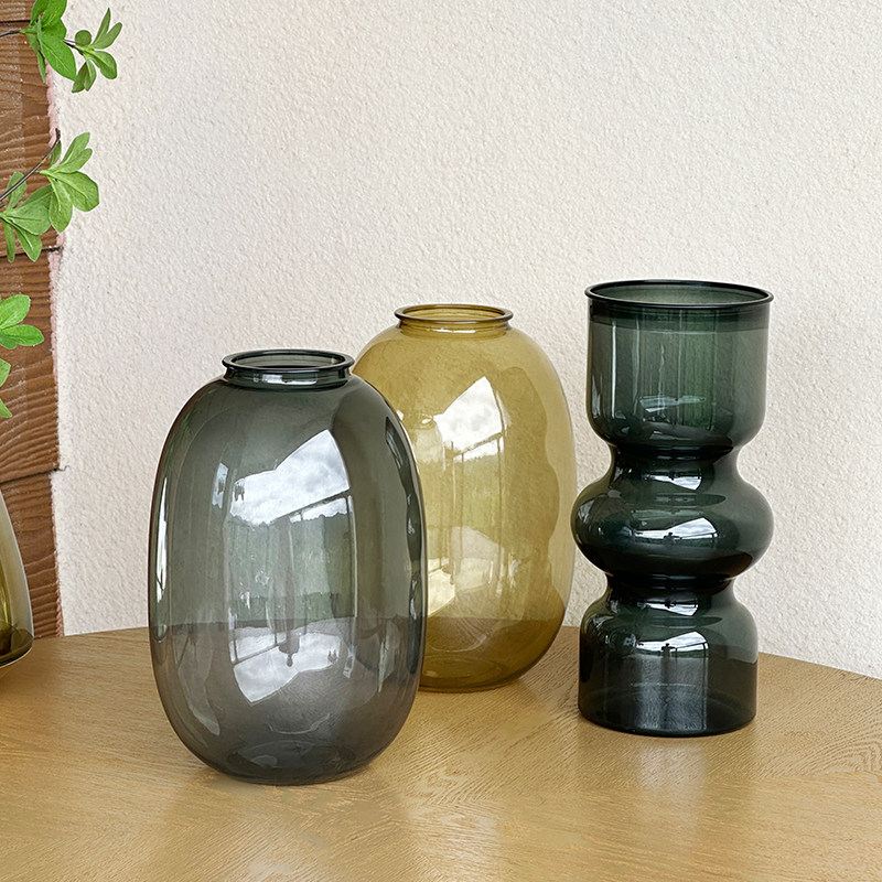 仿玻璃花瓶摆件客厅插花富贵竹透明水养绿植复古轻奢高级感ins风