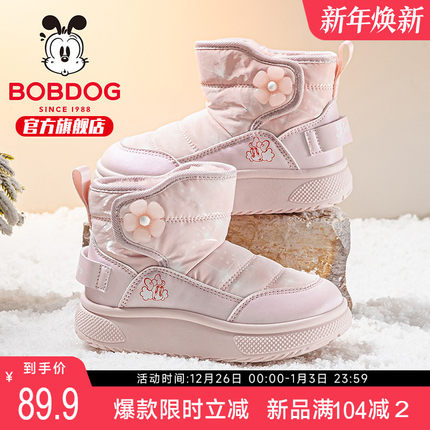 巴布豆童鞋儿童雪地靴加绒保暖棉靴2025新款冬靴女宝冬鞋女童靴子